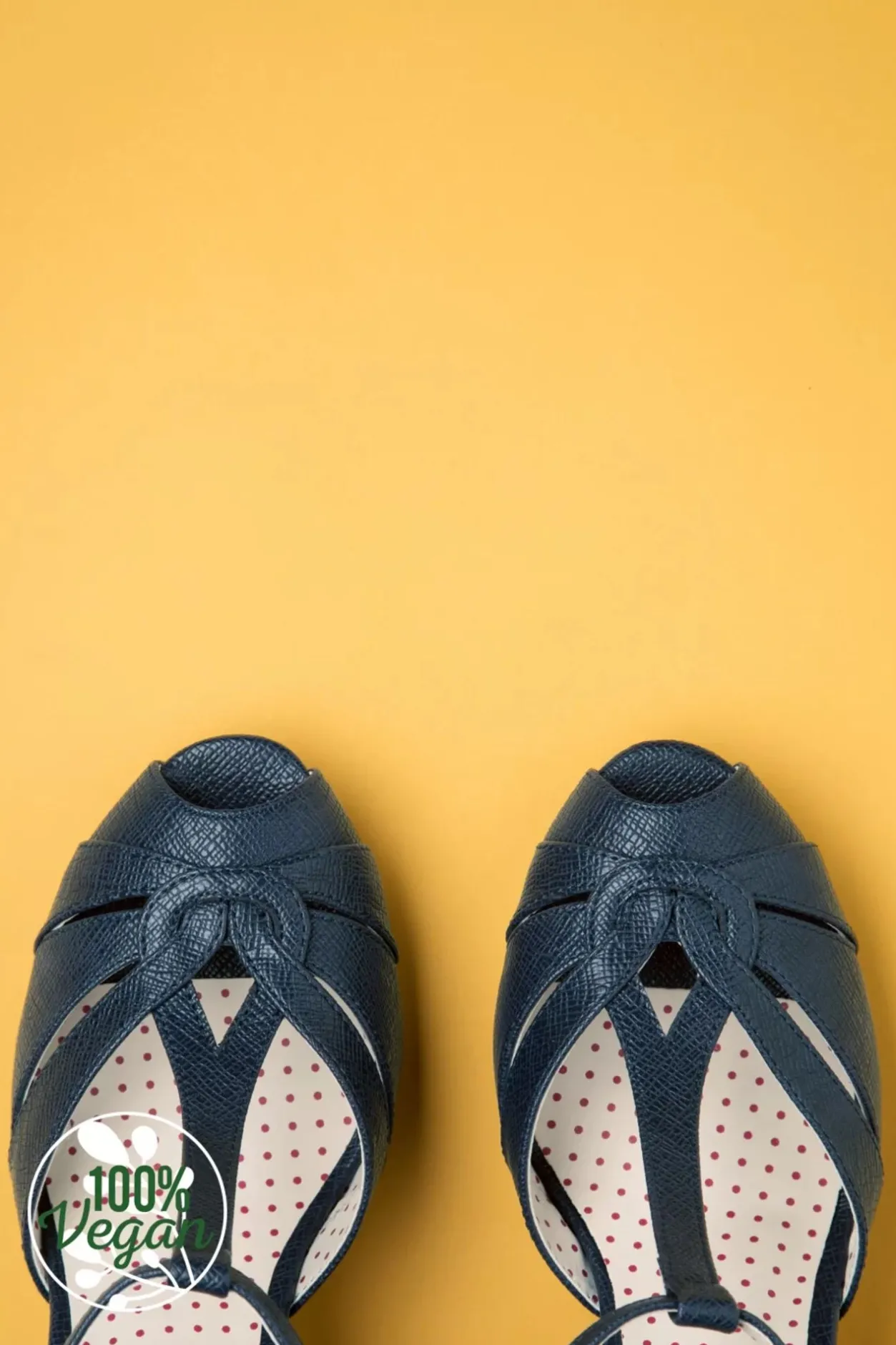 In De Jaren Twintig En Dertig Kregen De Benen Eindelijk Meer Aandacht! Damesschoenen Werden Daarom Ook Steeds Eleganter! Deze 30S Lacey Art Deco T-Strap Pumps In Matte Navy Blue Mogen Dan Ook Gezien Worden, Net Als Je Benen! Uitgevoerd In Hoogwaardig Navyblauw ‘Faux’ Structuurleder Met Een Elegant T-Strap Bandje In Art-Deco Stijl En Een Sexy Peeptoe. Dankzij Het Subtiele Plateau Aan De Voorzijde Zijn Ze Minder Hoog Dan Ze Lijken En In Combinatie Met De Zachte Binnenzool Draag Je Deze Beauties Makkelijk De Hele Dag (En Nacht) Door. Laat Je Voetjes Spreken Dit Seizoen!