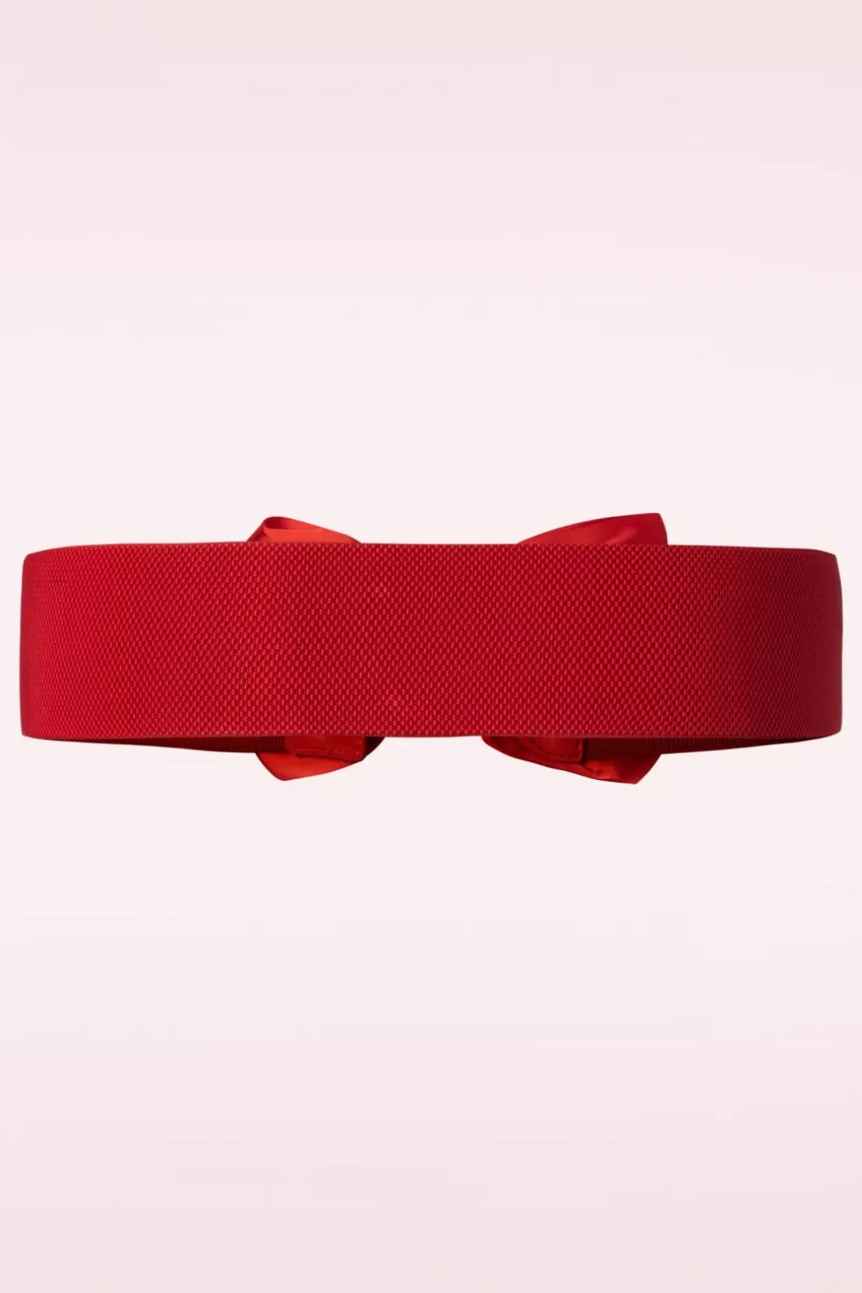 De 50S Bella Bow Belt Is Een Schattige Riem En Een Aanvulling Op Elke Outfit! Deze Prachtige Brede Stretchriem Hoort In De Taille Gedragen Te Worden Voor Een Mooi Gedefinieerd Silhouet, Oh La La! Uitgevoerd In Lipstickrood Elastiek Met Een Opvallende Volle Satijnachtige Strik Die Mooi In Vorm Blijft. Geweldig In Combinatie Met Onze Jurken En Rokken!