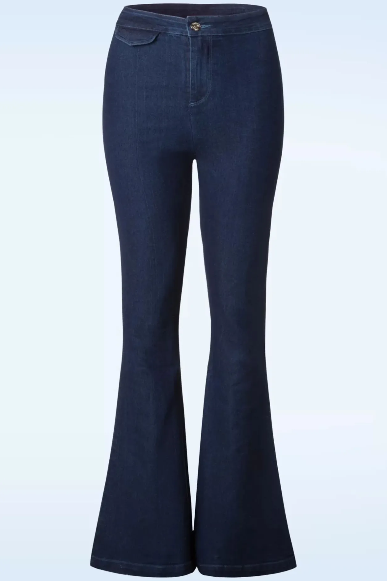 Deze 70S Legs Eleven Flared Trousers In Denim Is Zó Comfy, Je Wilt Haar Iedere Dag Wel Dragen! Geen Wonder Dat De Flared Broeken Een Grote Trend Waren In De Seventies En Nu Een Fantastische Comeback Hebben Gemaakt! De Wijd Uitlopende Pijpen Zijn Niet Alleen Speels Maar Ook Nog Eens Super Flatterend. Uitgevoerd In Een Stevige Doch Stretchy Denimblauwe Katoenmix Voor Een Heerlijk Draagcomfort. How I Like My Trousers? Comfy, Fabulous And… Flared!