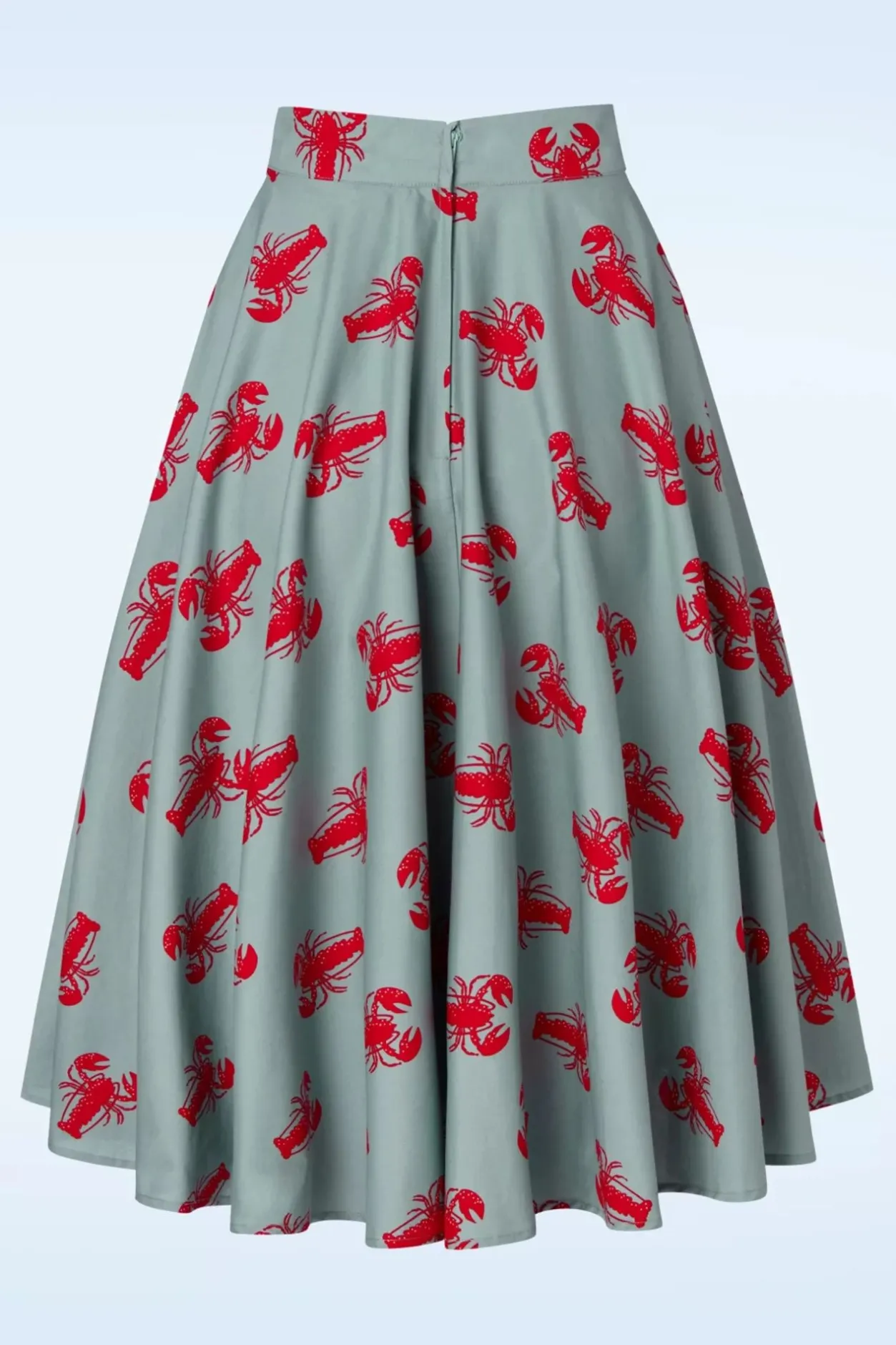Feitje: ”Lobsters Fall In Love And Mate For Life…” How Cute! Deze Lobster Love Skirt In Blue Is Liefde Op Het Eerste Gezicht! Ze Wordt Hoog In De Taille Gedragen En Loopt Uit In Een Flatterende, Zwierige Swing Rok. Uitgevoerd In Een Stevige, Maar Soepel Vallende, Lichtblauwe Katoenmix (Stretcht Amper) Met Een Print Van Rode Kreeftjes. Op Een Schaal Van 0 Tot 10… Hoe Gelukkig Word Jij Van Deze Rok? 😉