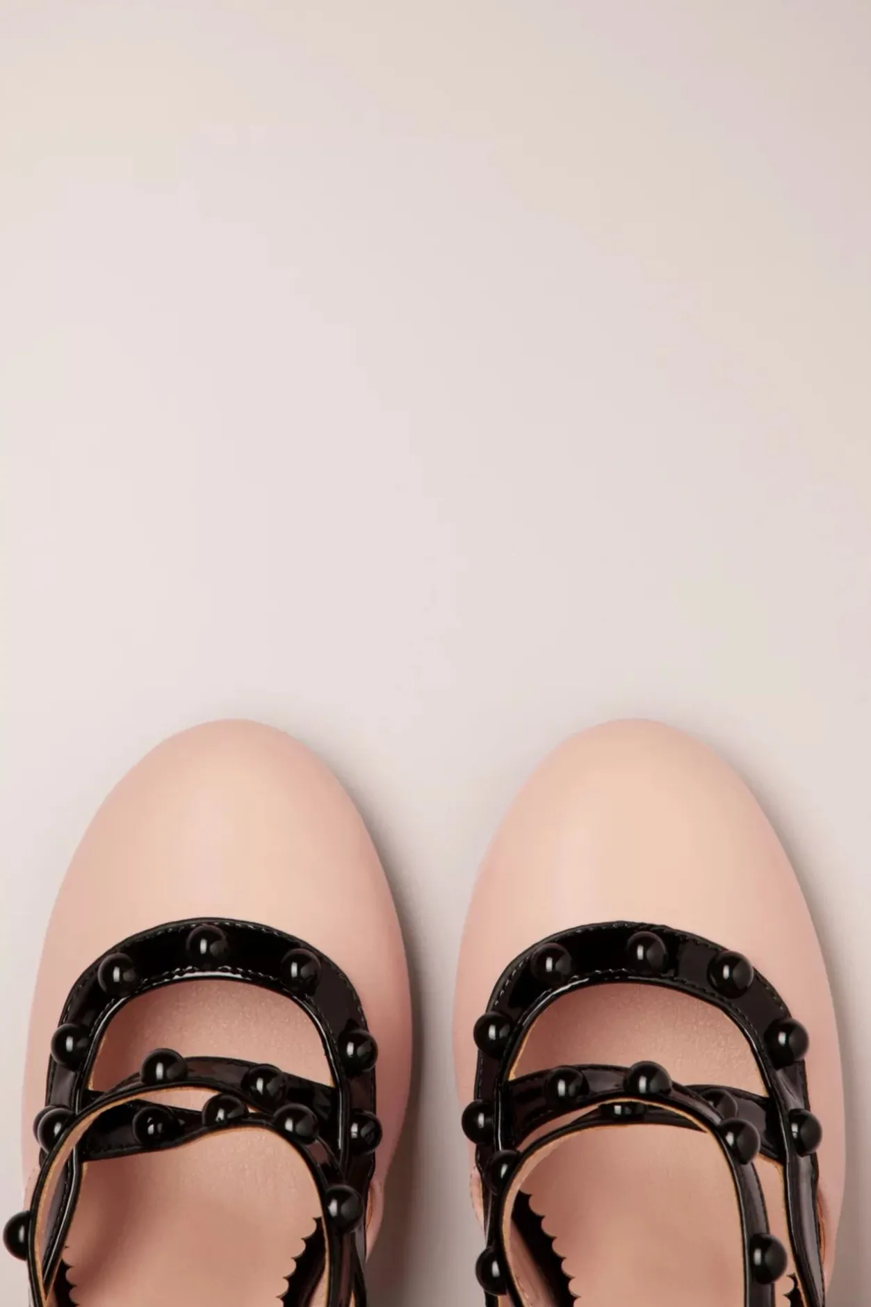 Nieuwe Collectie ~ Wij Zijn In De Ban(Ned) Van Deze Pumps! 😉 Uitgevoerd In Hoogwaardig Poederroze Kunstleder, Afgewerkt Met Zwarte Lak Biesjes, Opvallende ‘studs’ En Een Hoge, Smalle Hak.