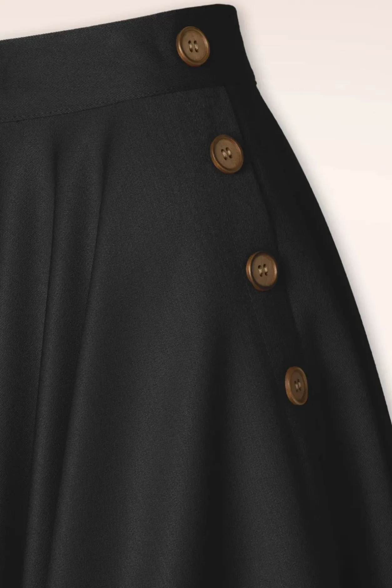 Klassiek, Tijdloos En Ontzettend Vrouwelijk! Deze Polly May Swing Skirt In Black Kun Je Eindeloos Combineren! Je Draagt Haar Hoog In De Taille Vanwaar Zij Uitloopt In Een Elegante, Zwierige Swing Rok Met Zijwaartse ‘Faux’ Knoopdetails En Handige Steekzakjes. Uitgevoerd In Een Soepel Vallend, Zwart Stofje (Stretcht Amper) Die Heerlijk Draagt. Deze Swing Beauty Wordt Gegarandeerd Jouw Nieuwe Zomer Favoriet!