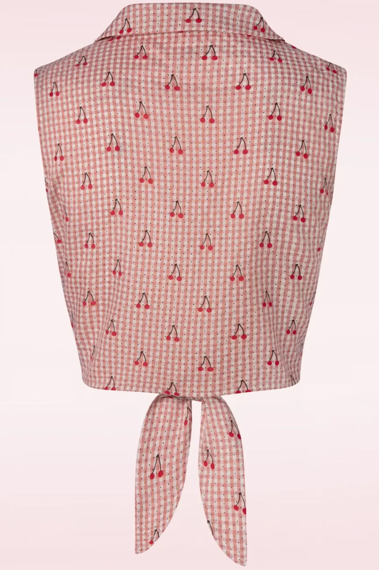 Deze Sweet Pea Blouse In Pink Gaat Iedere Outfit Die Speelse Zomer Look Geven! Het Kortere Model Van De Blouse Is Ideaal Bij Een High Waist Broek Of Rok, Waardoor Je Net Een Glimp Van Het Meest Flatteuze Gedeelte Van Je Buik Kunt Laten Zien, Peekaboo 😉 Deze Cutie Is Afgewerkt Met Een Puntig Kraagje En Een Reeks Houten Knoopjes Met Aan De Onderzijde De Mogelijkheid Om Er Een Leuke Strik In Te Knopen. Uitgevoerd In Een Stevige, Maar Luchtige Roze Viscosemix Met Een Klassiek Ruitje Met Zwarte Dotjes En Kersjes. Aarzel Niet En ‘Strik’ Deze Cutie Voor Het Te Laat Is!