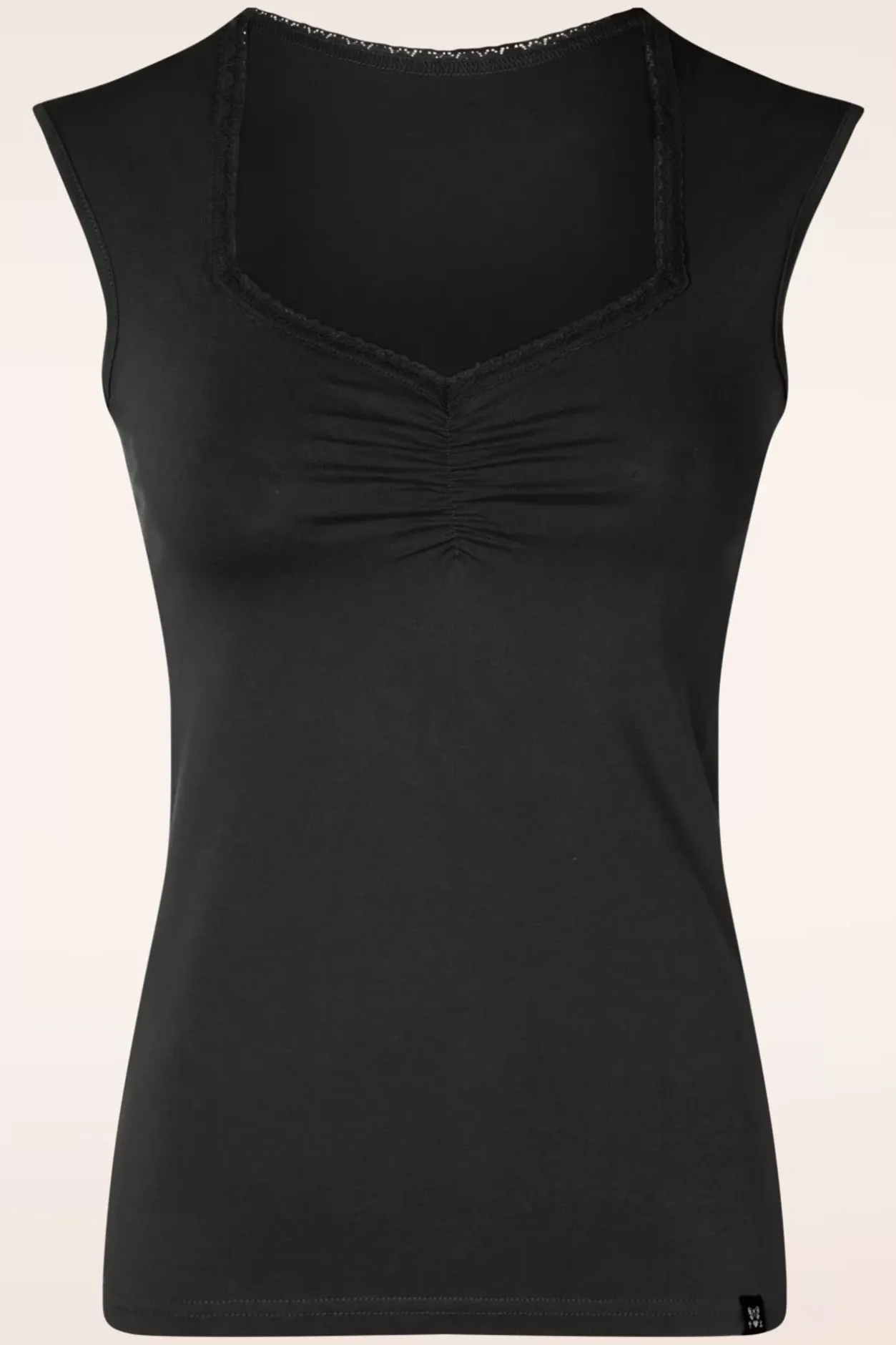 Zie Jij Alle Fantastische Combi’s Met Deze Top Al Voor Je?! De Diamantvormige Halslijn Is Afgewerkt Met Een Kanten Biesje En Zorgt Ervoor Dat Je Een Prachtig Decolleté Laat Zien. Uitgevoerd In Een Stretchy, Zwarte Bio Katoenmix Voor Een Mooie Aansluitende Pasvorm. Waar Je Haar Ook Mee Combineert, Ze Zal Alle Outfits Omtoveren In Een Prachtplaatje!