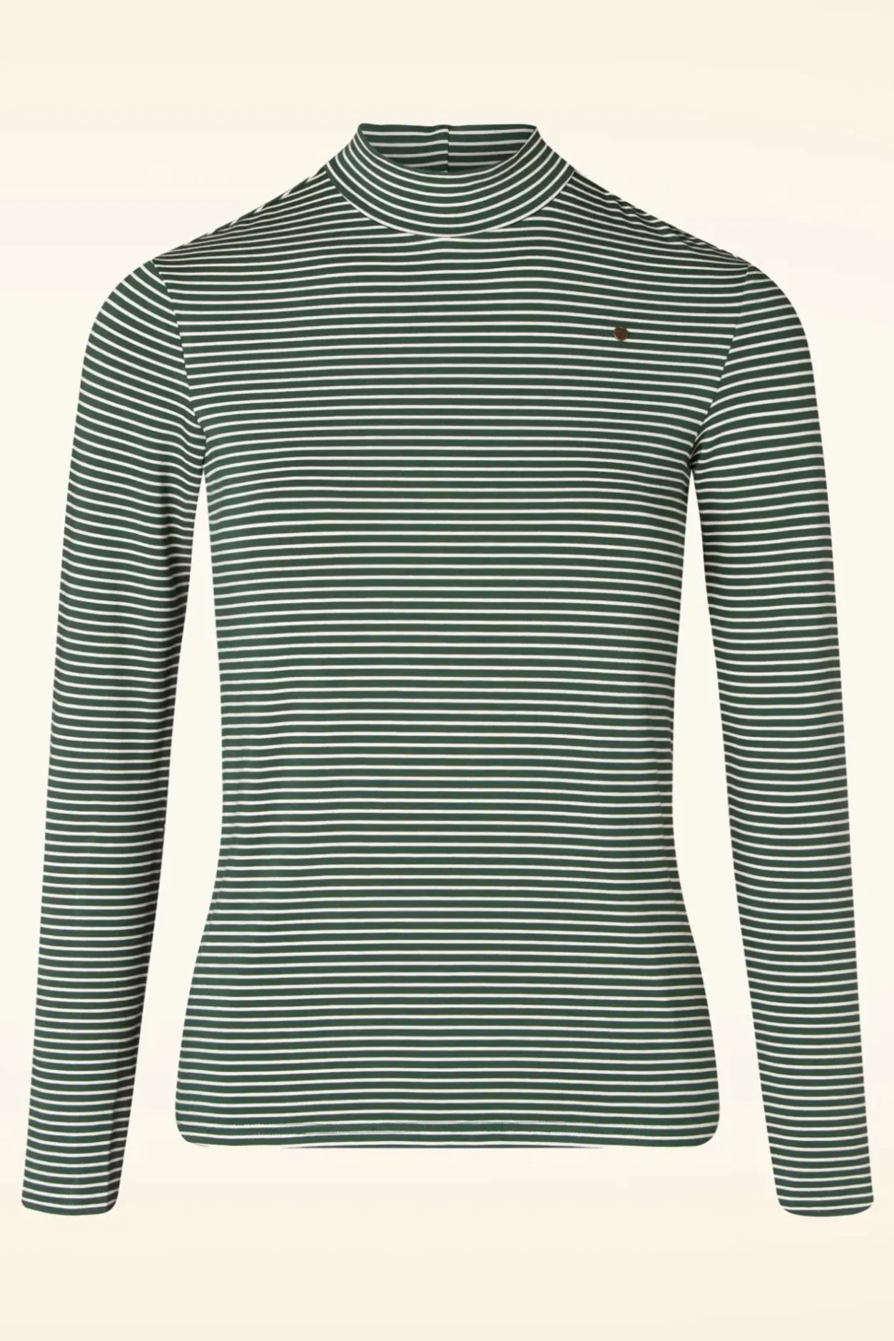 Wecan All Use Some Stripes, Can’T We? 😉 Deze 60S Lonely Lips Gestreepte Turtleneck Top In Donkergroen Is Dan Ook Onmisbaar In Je Garderobe! Ze Heeft Een Speels Colkraagje, Lange Mouwen, Witte Strepen En Is Uitgevoerd In Een Soepele En Stretchy, Donkergroene Viscosemix Die Heerlijk Draagt. Het Najaar Komt Er Aan, Met Deze Top Ben Jij Er Helemaal Klaar Voor!