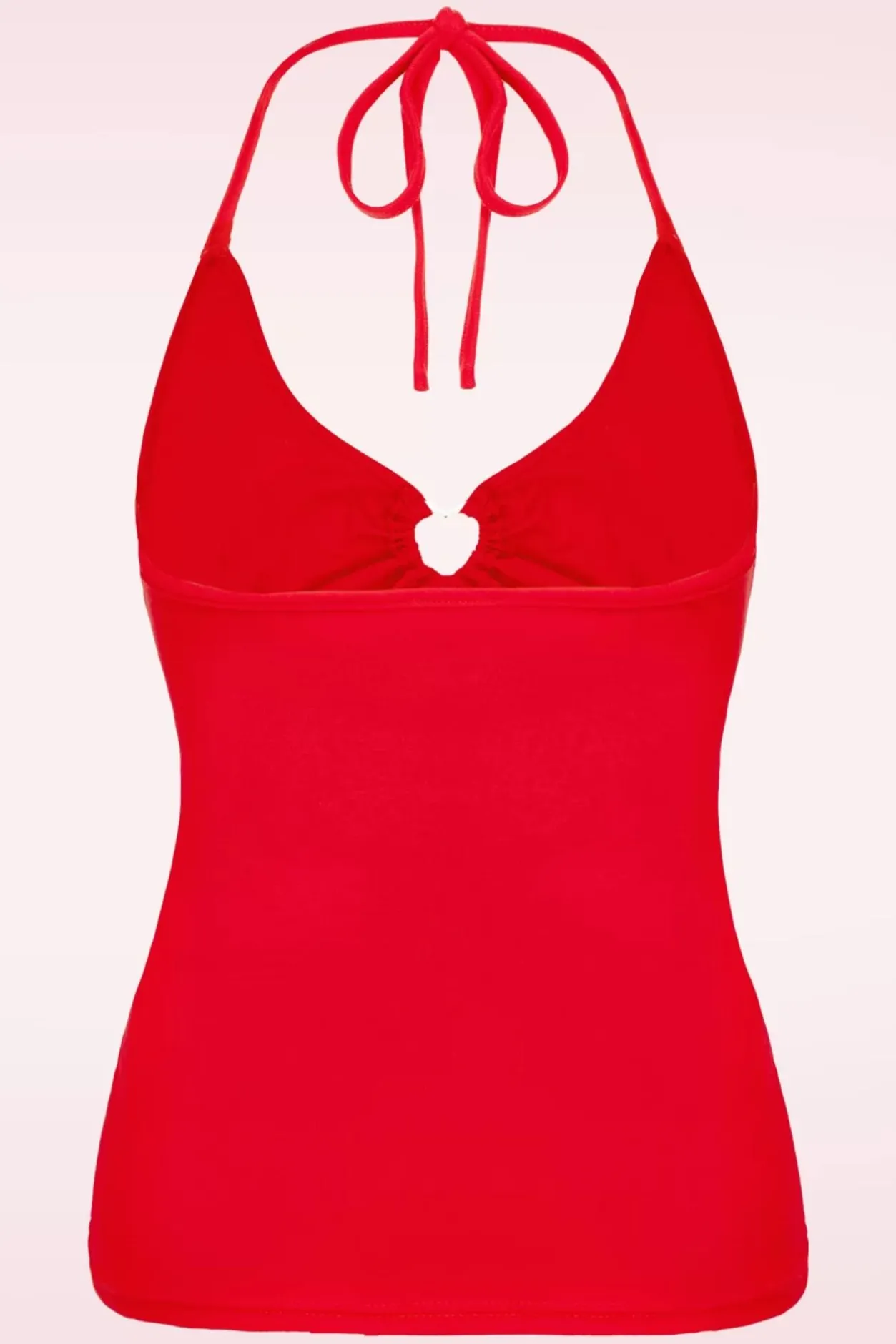 Nieuwe Lente/Zomercollectie ~ Tot Over Onze Oren Verliefd Op Deze Top! Ze Heeft Halterstijl Bandjes En Een Hartvormige Keyhole Die Ons Hartje Op Hol Laat Slaan ;-). Uitgevoerd In Een Stretchy, Lipstickrode Katoenmix Die Heerlijk Draagt. L-O-V-E!