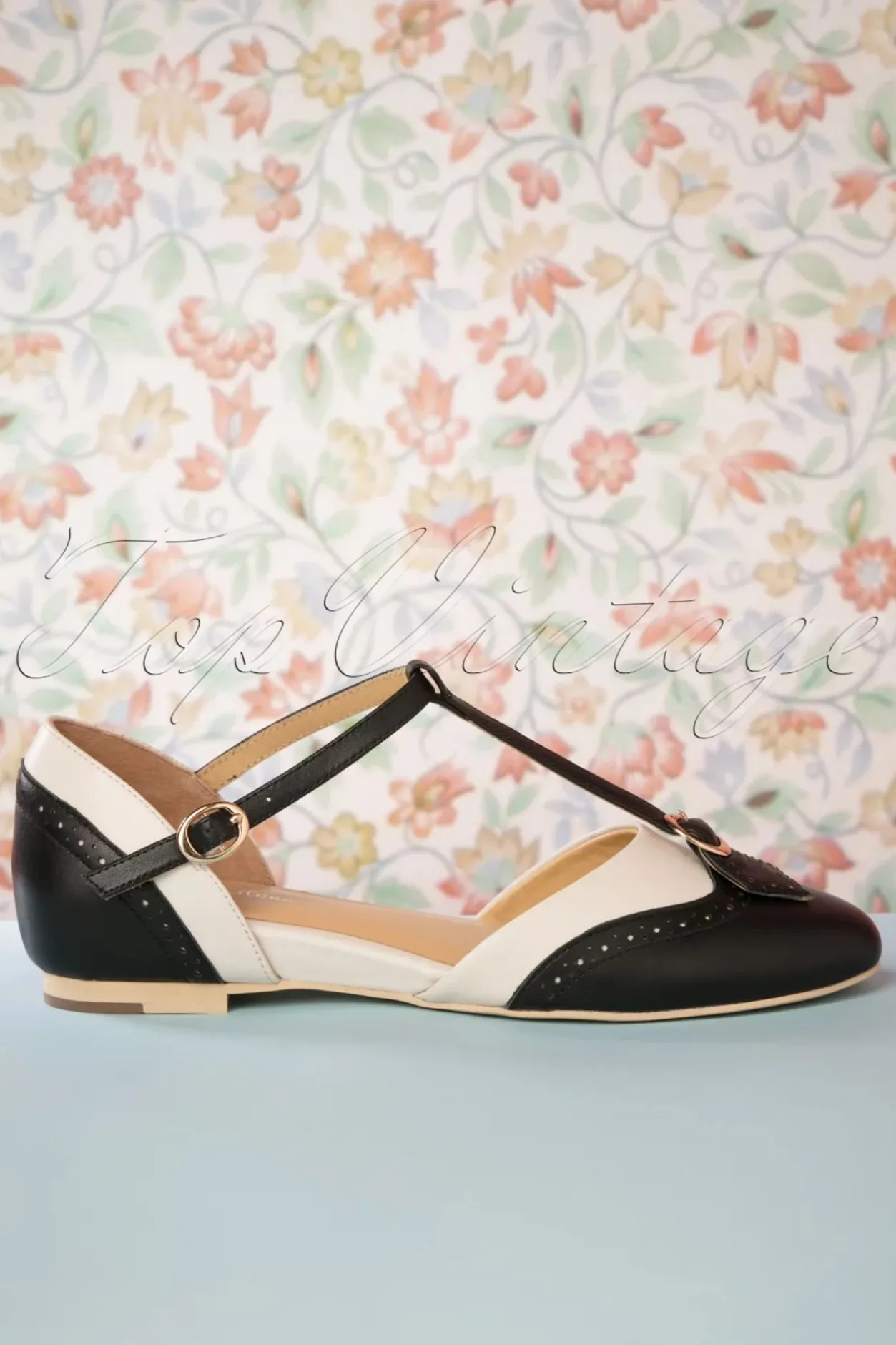 Geïnspireerd Op De Elegante Zwart/Witte Modetrend Die De Straten Van Parijs Domineerde In De Twenties, Maar Dan In Een Speels Fifties Jasje… Omarm Je Inner Parisienne Met Deze 50S Parisienne T-Strap Flats In Black And Cream Aan Je Voetjes! Uitgevoerd In High Quality Zwart En Crèmekleurig Leder Met Een Speels T-Strap Bandje, Brogue Details En Sierlijke Goudkleurige Gespjes. Combineer Ze Met Je Favoriete Outfit En Ga Voor Die ‘Je Ne Sais Quoi’ Attitude Dit Voorjaar!