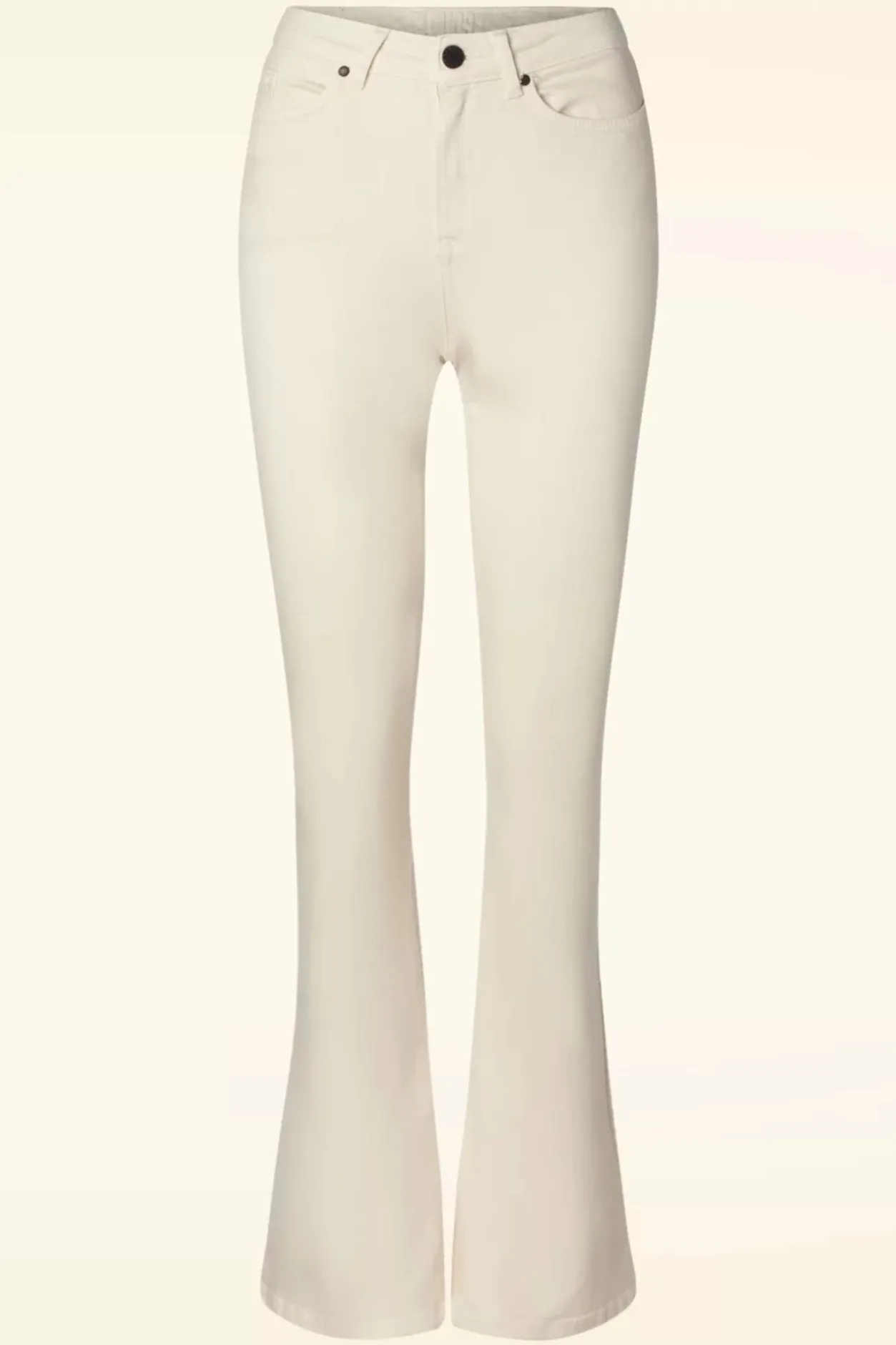 Deze Dora Flared Jeans Is Zó Comfy, Je Wilt Haar Iedere Dag Wel Dragen! Geen Wonder Dat De Flared Broeken Een Grote Trend Waren In De Seventies En Nu Een Fantastische Comeback Hebben Gemaakt! Uitgevoerd In Een Stevige Maar Stretchy, Gebroken Witte Katoenmix Voor Een Heerlijk Draagcomfort. ”How I Like My Trousers? Comfy, Fabulous And… Flared! ;-)”