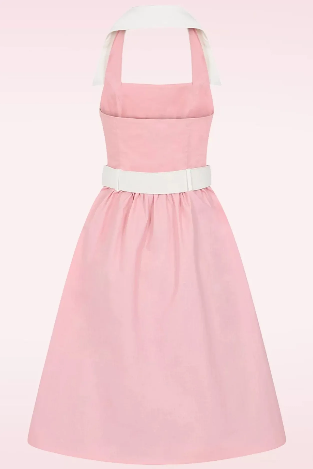 ”Think Pink, Wear Waverly Swing Dress In Pink!” Deze Zomerse Jurk Heeft Een Halterhalslijn Met Een Contrasterend Ivoorwit Kraagje, Een Reeks ‘Faux’ Knopen Op Het Lijfje En Een Riem Die Je Taille Perfect Benadrukt. Uitgevoerd In Een Soepele En Luchtige, Lichtroze Katoenmix Met Een Lichte Stretch Die Heerlijk Draagt. Ben Jij Al Verliefd?