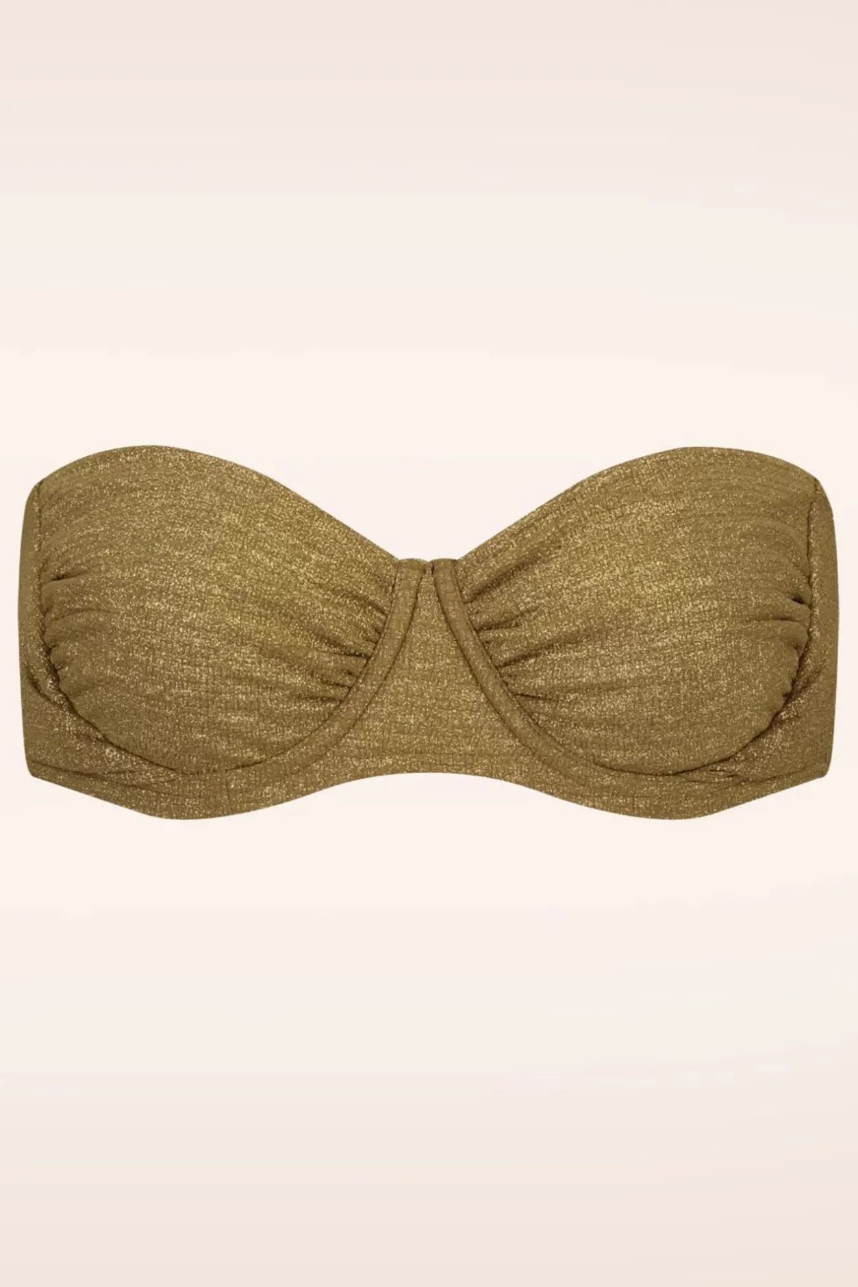 Slechts Een Blik Op Deze Desert Glow Bikini Top In Gold En De Goudkoorts Slaat Toe! Ze Is Voorzien Speelse Plooitjes En Een Beugel Die Je Borsten Net Dat Beetje Extra Steun Geven En Tegelijkertijd Zorgen Voor Een Prachtig Decolleté! Afgewerkt Met Halterbandjes Die Je In De Nek Kunt Strikken Of Onder De Buste Voor Een Strapless Effect. Uitgevoerd In Een Stretchy, Structuurstofje Met Een Goudkleurige Shimmer Dat Heerlijk Draagt En Perfect Aansluit. ”stay Golden, Baby!”