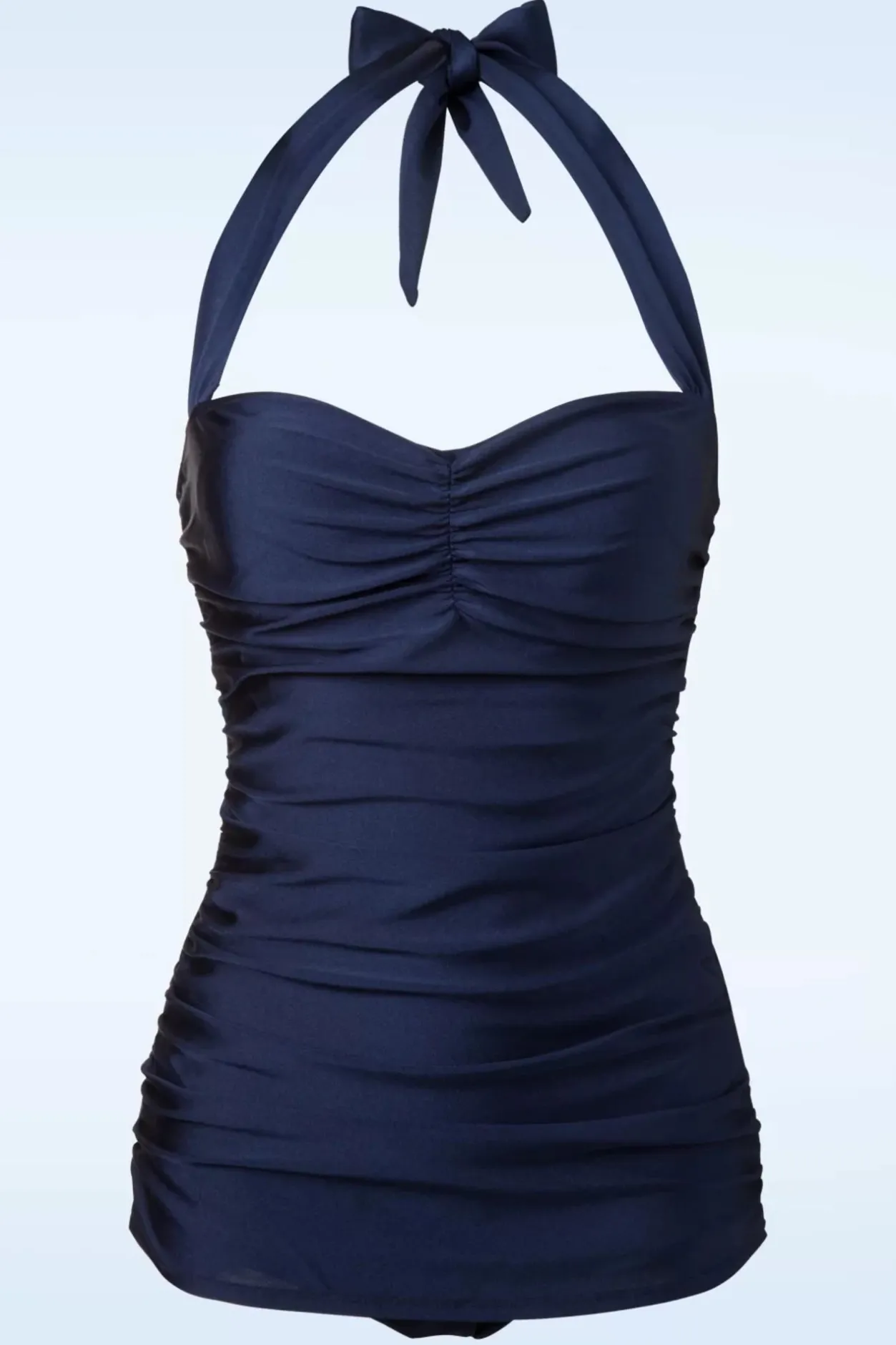 Dit 50S Classic Fifties One Piece Swimsuit In Navy Is Een Prachtig 50S Geïnspireerd Badpak! Wij Zijn Net Als Marilyn Monroe Over Onze Oren Verliefd Op Deze Beauty! Halter Top Met Gerimpelde Sweetheart Halslijn, Gerimpelde Zijkanten Waardoor De Taille Slanker Lijkt En Het Typische ‘Jurkje’ Met Gerimpelde Voorzijde Dat Enorm Flatteert. Geschikt Voor Alle Lichaamstypes Dankzij De Samenstelling Van De Stof En Het Slimme Design! Uitgevoerd In Een Stretchy Donkerblauw Stofje En Voorzien Van Extra Support; De Ingenaaide Soft Cups Hebben Een Elastische Band Onder De Buste Voor Een Stevig Decolleté. Dit Schatje Mag Absoluut Niet In Je Vintage Swimwear Collectie Ontbreken, Do It Like Marilyn 😉