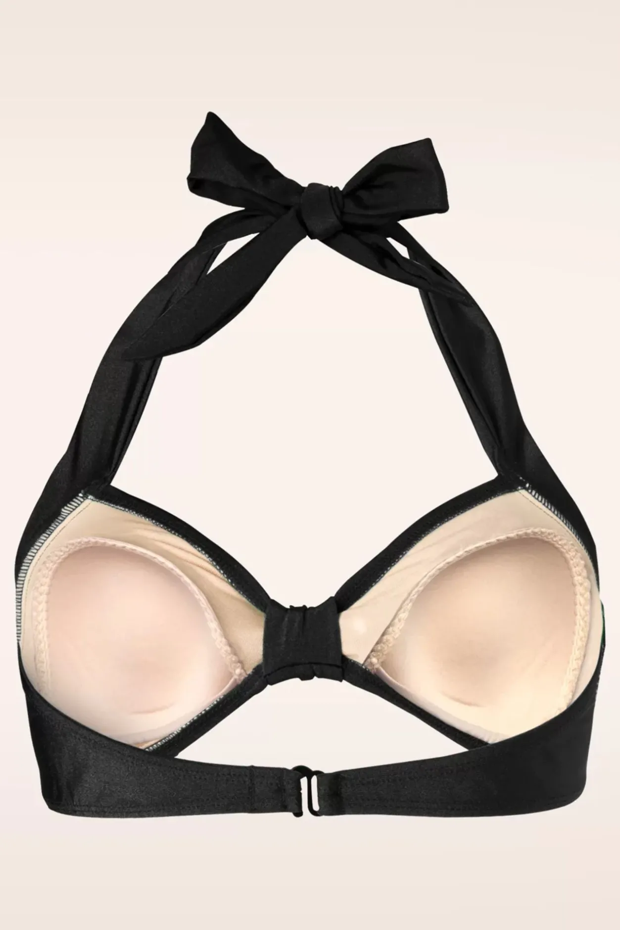 Deze Fantastische 50S Classic Bikini Top In Black Heeft De Perfecte Vintage Pin-Up Uitstraling. Deze Collectie Is Ontworpen Voor Echte Vrouwen En Is Passend Voor Vrijwel Elk Lichaamstype En Kleedt Ongelooflijk Af! Uitgevoerd In Topkwaliteit, Gladde Zwarte Stof Die Heerlijk Draagt En Voorzien Van Ingenaaide Soft Cups Met Verstevigde Baleinen Aan De Zijkant. Niet Enkel Om Te Flaneren, Maar Uiteraard Ook Geschikt Voor Een Frisse Duik Zonder Zorgen 😉