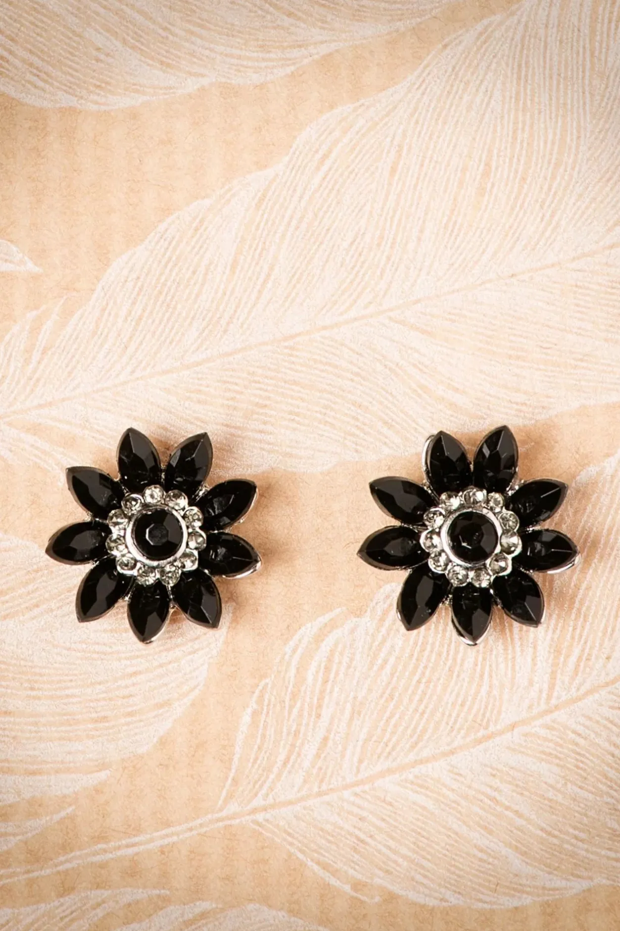 Deze Oorbelletjes Had Audrey Hepburn Beslist Ook Graag Aan Haar Collectie Toegevoegd! Elegante, Zilverkleurige, Bloemvormige Oorbellen Bezet Met Prachtige, Zwarte Facet Geslepen Steentjes En Strass Steentjes.
