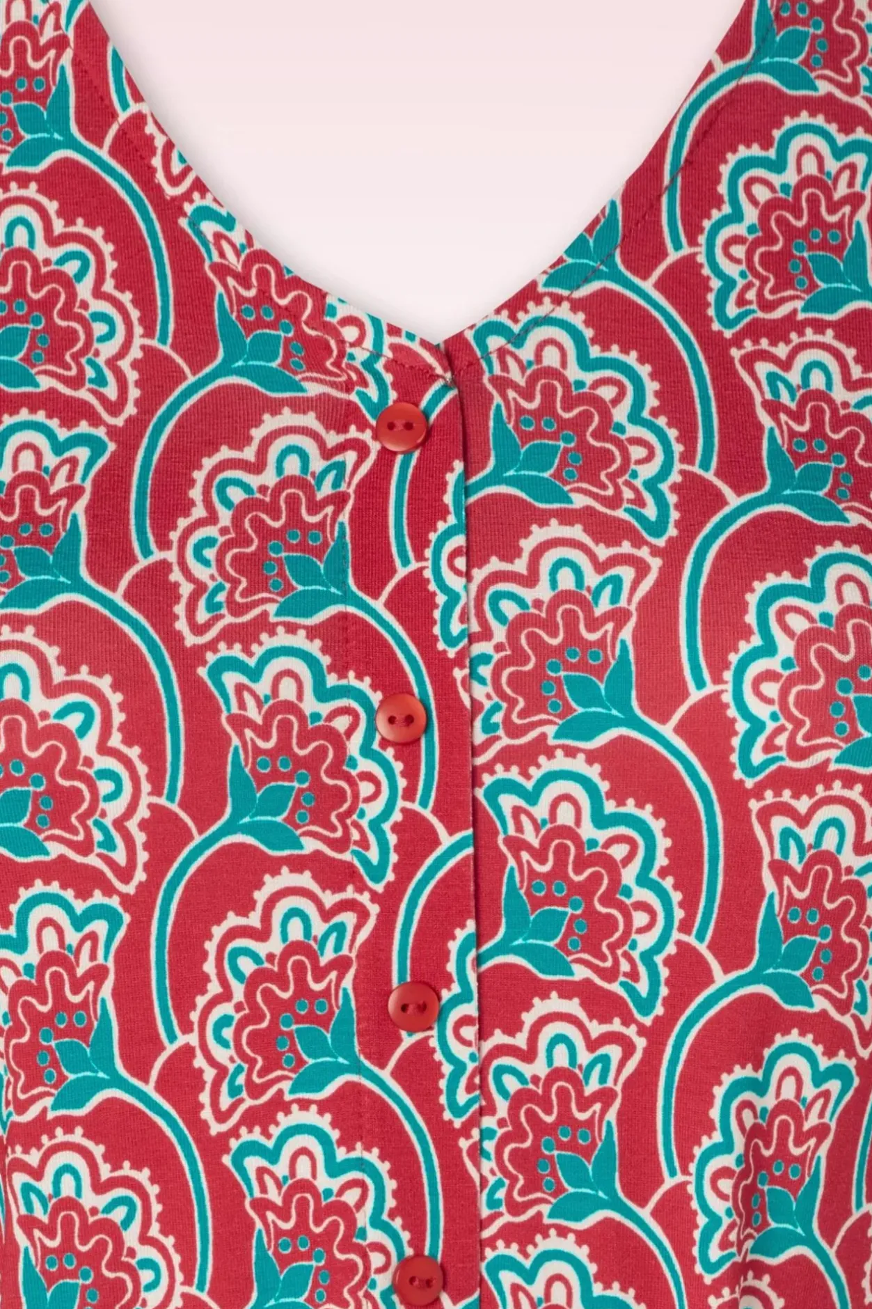 Nieuwe Lente/Zomercollectie ~ “Comfy And Cute, Just The Way We Like It!” Deze Midi Beauty Is Uitgevoerd In Een Soepel Vallende, Stretchy, Donkerrode Ecovero Viscosemix Die Heerlijk Draagt En Voorzien Is Van Een Bloemenprint In Wit En Teal.