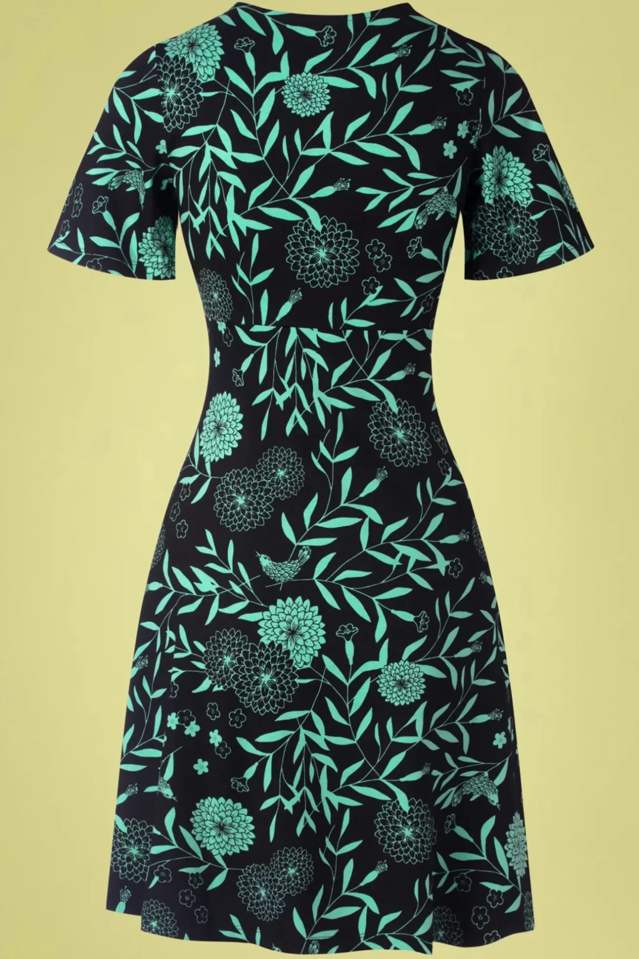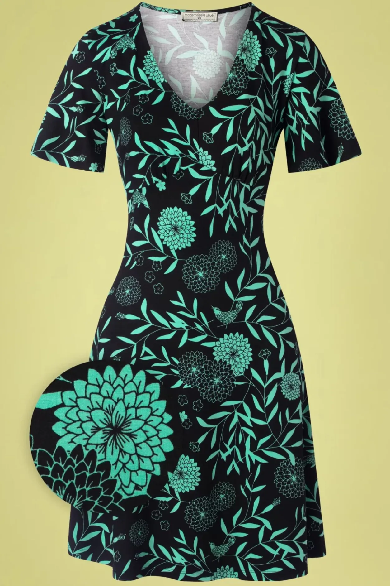 Van Deze Mint Cocktail Dress In Japanese Flowers Green Kun Je Geen Genoeg Krijgen! Ze Heeft Een V-Halslijn, Korte Mouwen En Loopt Vanaf De Taille Uit In Een Flatterend A-Lijntje. Uitgevoerd In Een Soepel Vallende, Stretchy Zwarte Ecovero Viscosemix Met Groene Bloemen En Bladeren. “Every Day Is Great” Met Deze Cutie! 😉