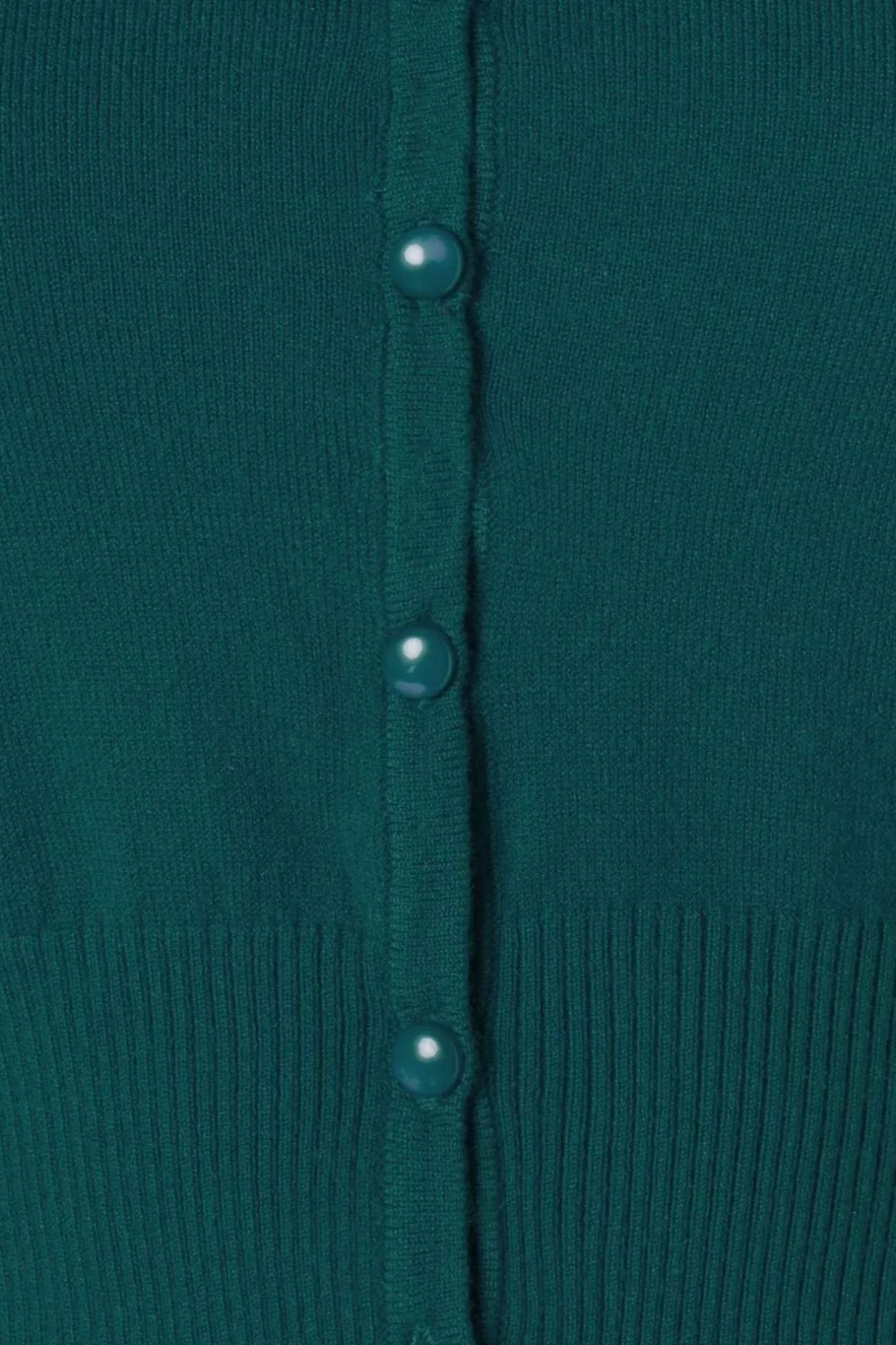 De 50S Nyla Cropped Cardigan In Peacock Blauw Is Een Echte Klassieker… Online In Nederland, Duitsland En Frankrijk Exclusief Verkrijgbaar Bij Topvintage! Classy In Al Haar Eenvoud En Daardoor De Perfecte Match Met Al Jouw Vintage Kledingstukken 😉 Deze Korte Cardi Heeft Een Ronde Halslijn, Lange Mouwen En Een Reeks Glimmende Knopen. Uitgevoerd In Een Fijngebreide, Zachte Viscosemix In Blauw/Groen Met Een Heerlijke Stretch Voor Een Mooie Aansluitende Pasvorm. De Combinatiemogelijkheden Zijn Eindeloos!
