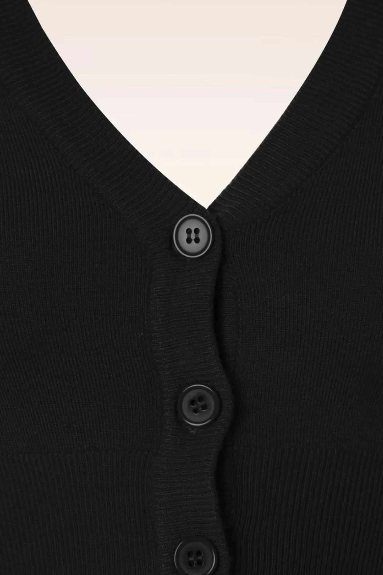 De&Nbsp;50S Shela Cropped Cardigan In Black Een Echte Klassieker…&Nbsp;Online In Nederland, Duitsland En Frankrijk Exclusief Verkrijgbaar Bij Topvintage!&Nbsp; Classy In Al Haar Eenvoud En Daardoor De Perfecte Match Met Al Jouw Vintage Kledingstukken! Deze Korte Cardi Heeft Een Elegante V-Halslijn, 3/4 Mouwen En Grote Glimmende Knopen. Uitgevoerd In Een Fijngebreide, Zachte, Zwarte Acrylmix Met Een Heerlijke Stretch Voor Een Mooie Aansluitende Pasvorm. De Combinatiemogelijkheden Zijn Eindeloos!