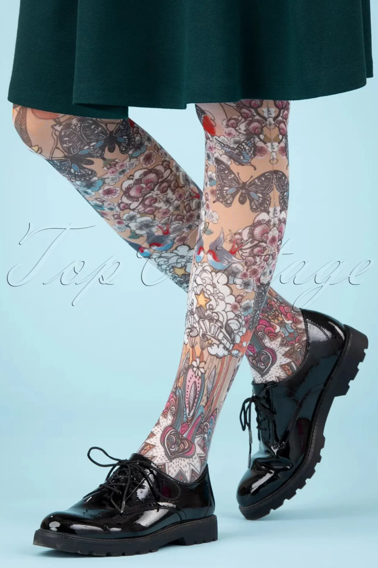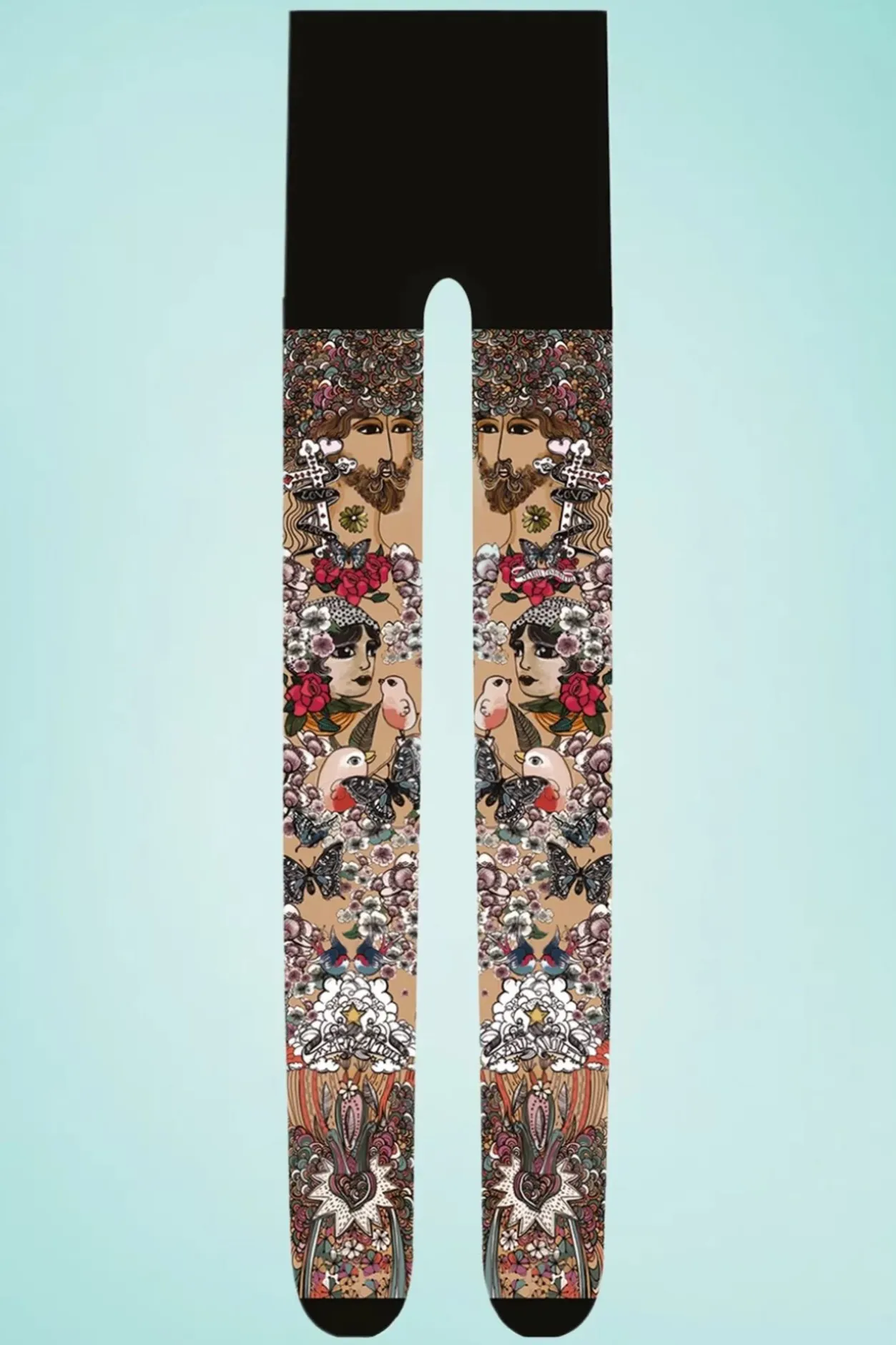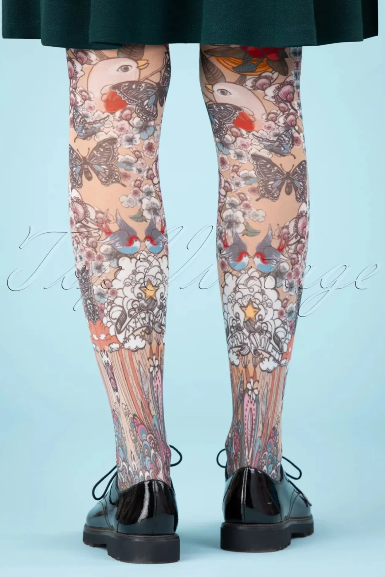 Ze Worden Met Liefde En Passie Ontworpen En Bedrukt In Een Atelier In De Buurt Van Lyon En Zijn Dan Ook Echte Kunstwerkjes Aan Je Benen! Deze 50S Joséphine Tights Uit De ‘Tattoo’ Collectie Zijn Uitgevoerd In Een Beige Stofje Voorzien Van Zwaluwen, Bloemen En Typische ‘Rockabilly’ Details. Ze Zitten Heerlijk Comfortabel Om Je Benen En Stretchen Goed Mee. ”Rock Your Legs!”
