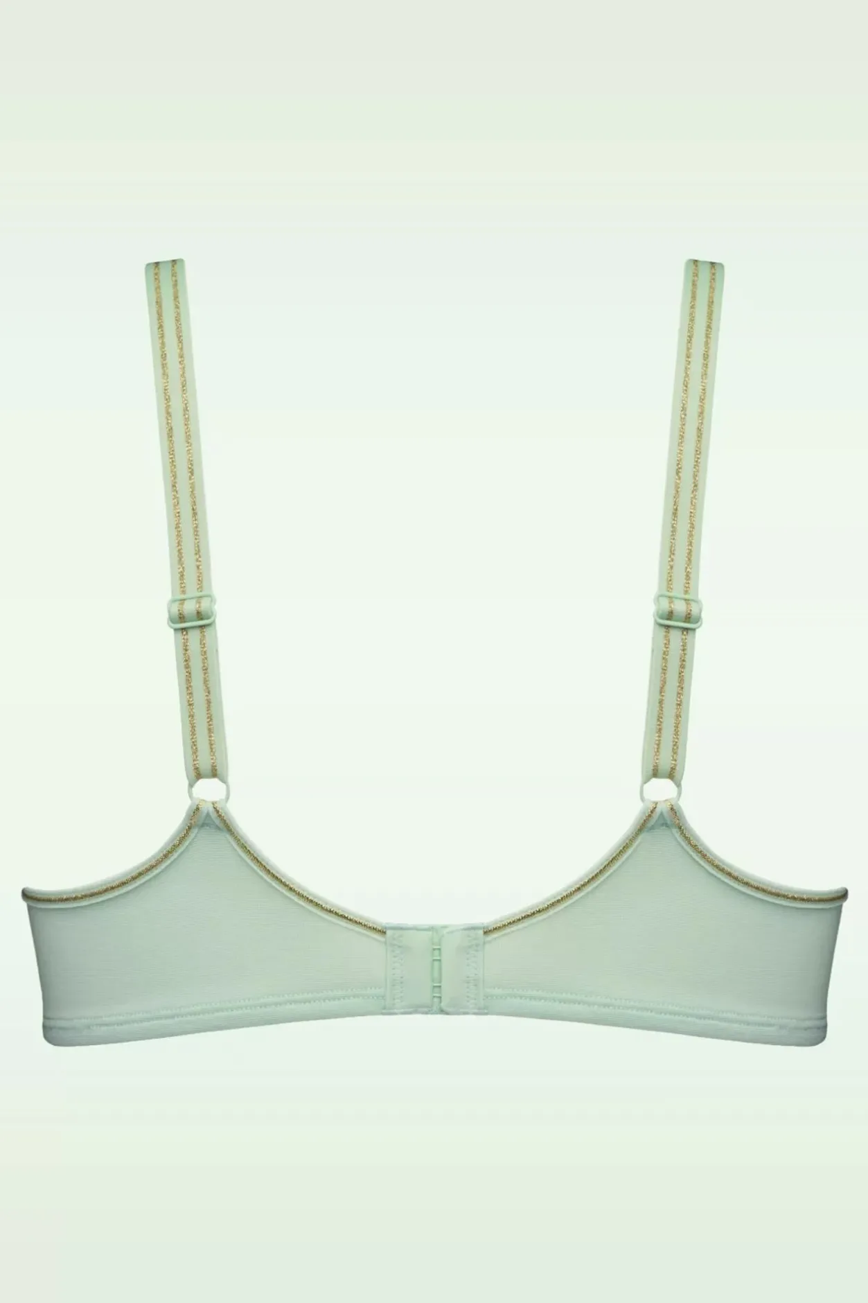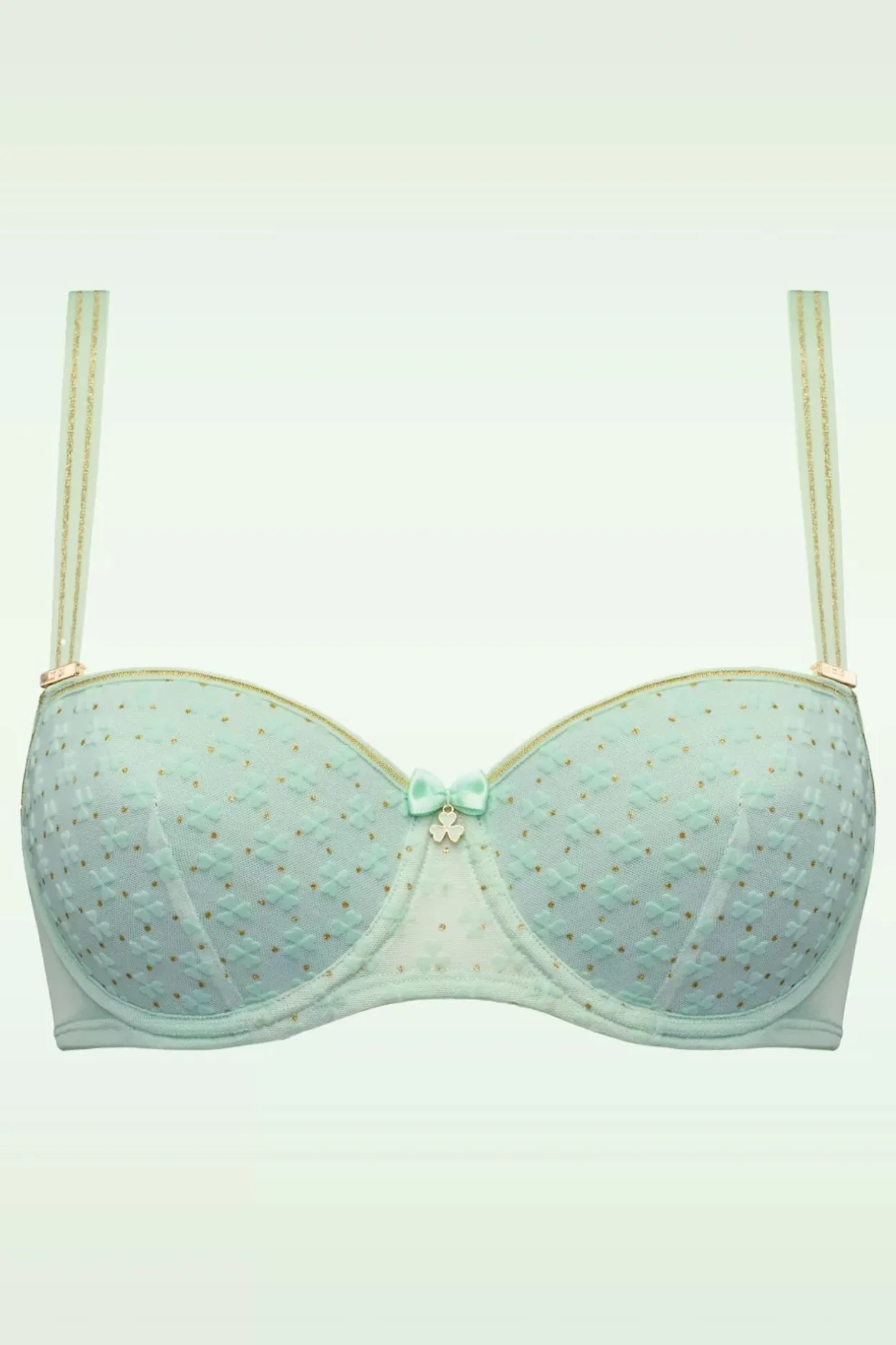 ”Channel Your Inner Lady Luck!” Marlies Heeft Zichbij Het Ontwerpen Van Deze Collectie Laten Inspireren Door ‘The Elvis Ofgardening’… Gertrude Jekyll! Een Voorgevormde, Mintgroene Bh Met Beugelsuitgevoerd Met Een Overlay Van Mesh Voorzien Van Fluwelen Klavertjes Ensprankelende Goudkleurige Lurex Details. ”Luck Is Already On Your Side” Wantdeze Bh Kan Zomaar Van Jou Zijn!
