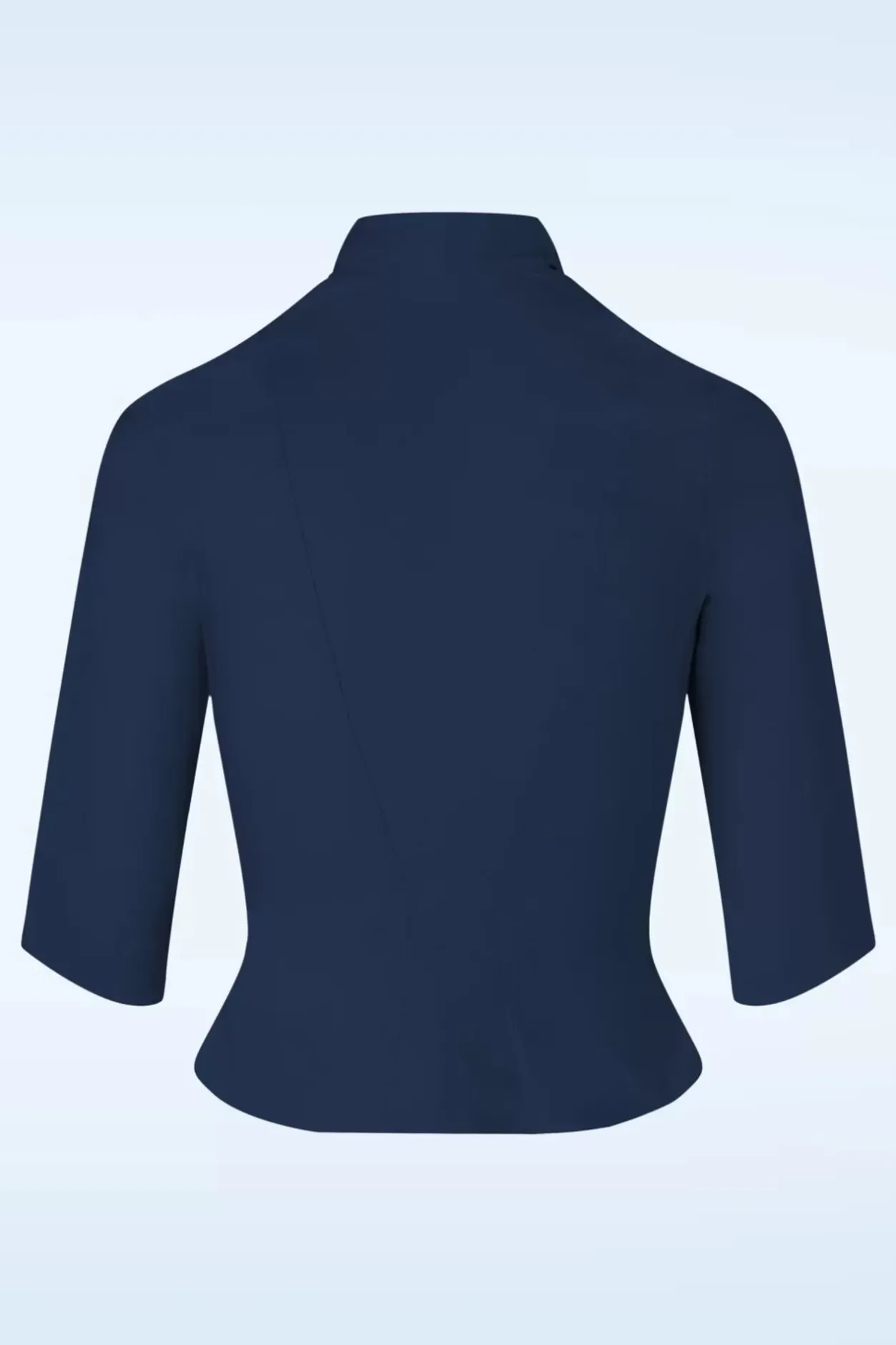 Of Je Deze 50S Liza Lee Becoming Versatility Chic Blazer In Navy Nu Combineert Met Een Rok Of Pantalon, Jouw Outfit Ziet Er Hoe Dan Ook ‘On Point’ Uit! Daarnaast Is Dit Prachtplaatje Geïnspireerd Op Niemand Minder Dan Grace Kelly Herself. Dit Blazertje Barst Van De Mooie Details, Zo Heeft Ze; 3/4 Mouwtjes, Plooien Bij De Schouders, Een V-Hals Met Opstaand Kraagje, Zakjes Met Strikdetail En Natuurlijk Het Subtiele Peplum Schootje Voor Een Super Vrouwelijk Silhouet. Uitgevoerd In Een Stevige Maar Stretchy, Navyblauwe Viscosemix Voor Een Geweldige Pasvorm. Heb Jij Al Een Look Met Dit Blazertje In Gedachte? 😉
