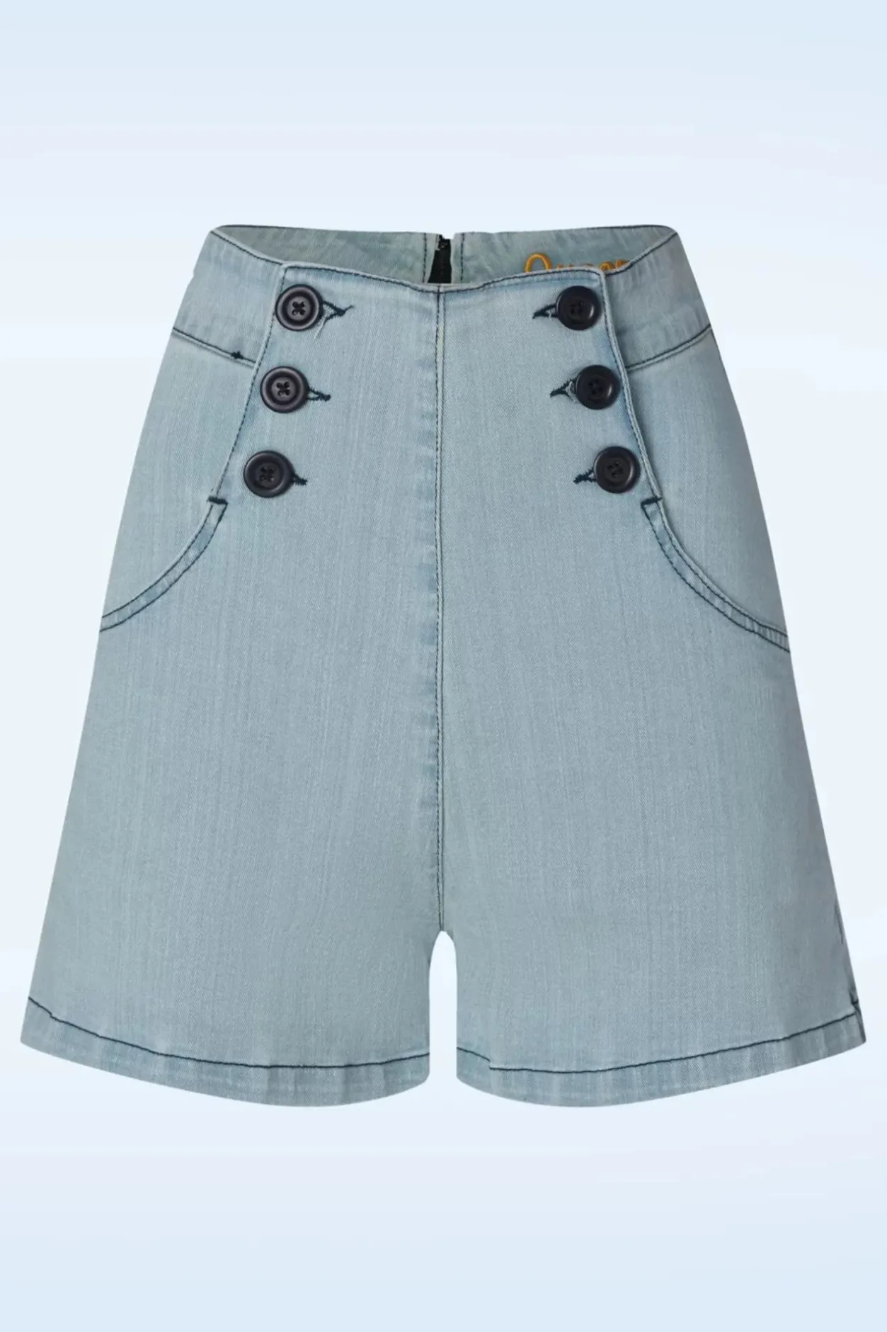 Nieuwe Lente/Zomercollectie ~ Geen Zin In Een Jurk, Maar Te Warm Voor Een Broek? Hallo, Marlyn Shorts! Ze Wordt Hoog In De Taille Gedragen En Is Voorzien Van Korte Pijpjes; Flatterend Voor Zowel Dames Met Slanke Benen Als Dames Met Curvy Benen ;-). Uitgevoerd In Een Stevige Maar Stretchy, Lichtblauwe Denim Katoenmix Die Een Genot Is Om Te Dragen. ”Life’s Too Short, To Not Wear Shorts!”