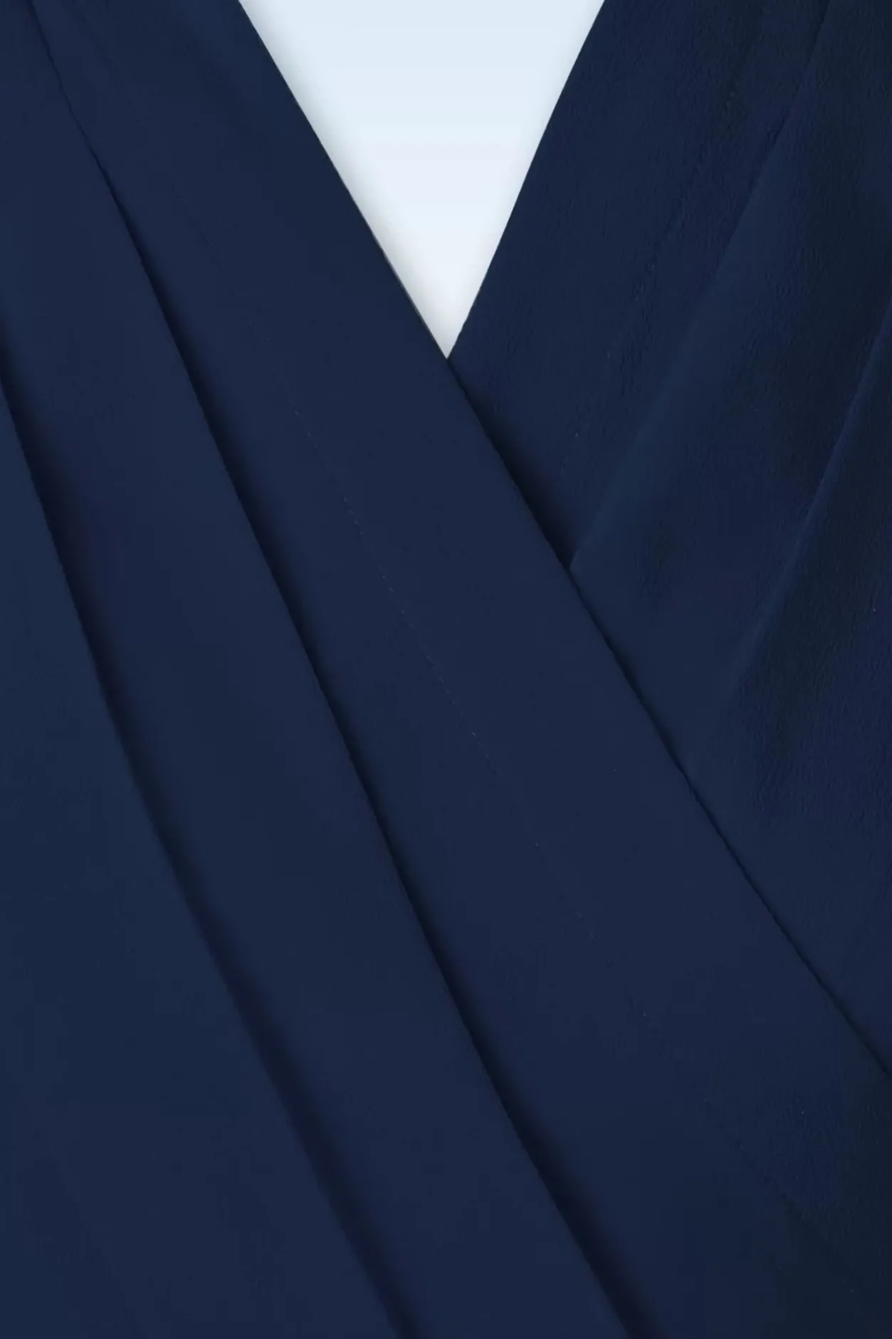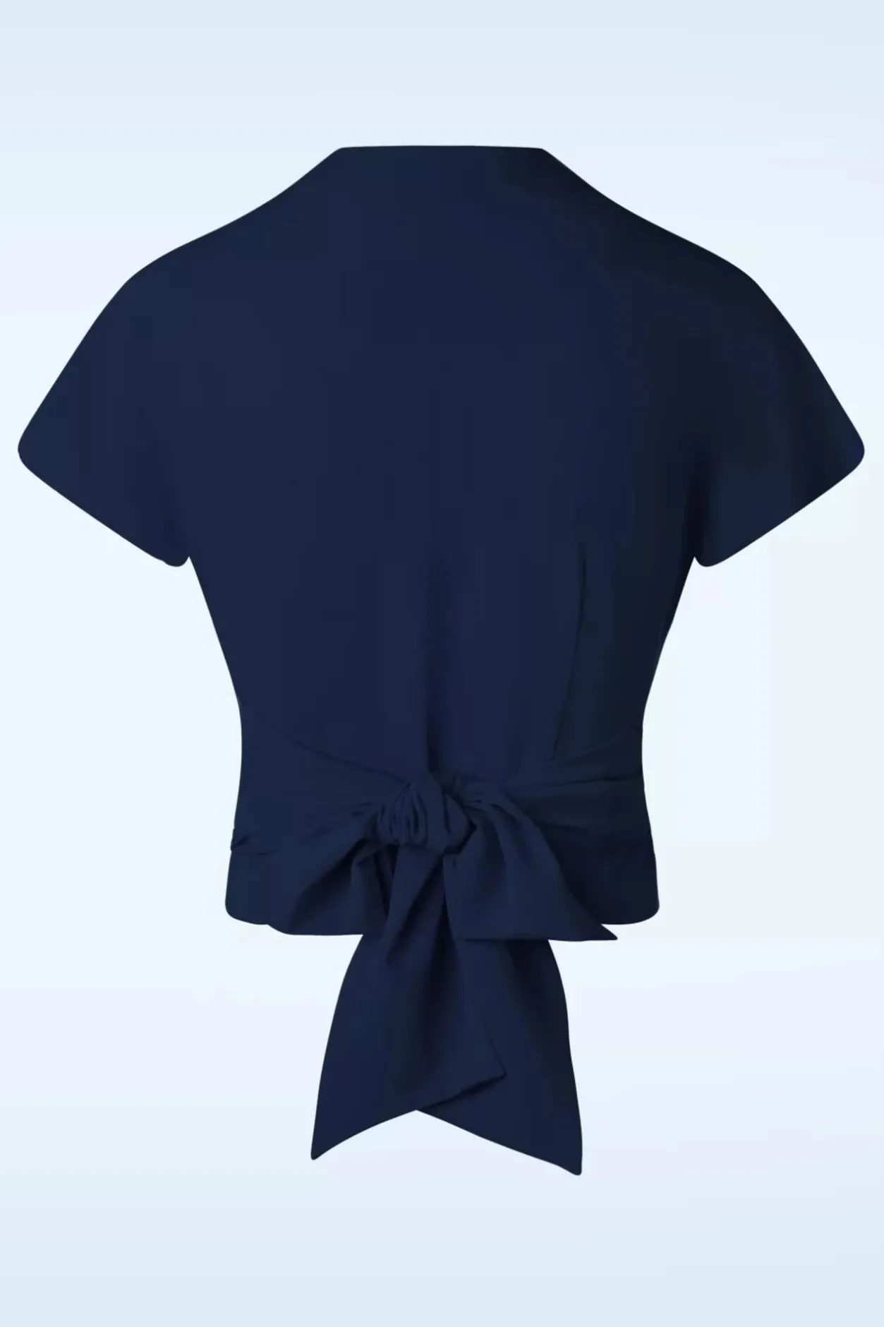 Deze 50S Darla Short Sleeve Wrap Blouse In Navy Is Een Van De Mooiste Vintage Inspired Blouses Die Je Ooit Zult Zien! Deze Overslag Beauty Heeft Elegante Platte Plooien, Korte Kimono Stijl Mouwen En Sluit D.M.V. Vaste Strikbanden. Uitgevoerd In Eensoepele, Navyblauwe Stof (Stretcht Niet) Met De Looks Van Crêpe De Chine Voor Die Ware Authetieke Touch. Combineer Haar Met Een Pencil Rok Of Een High Waist Broek Met Wijdepijp Voor Een Classy 50S Stijl!
