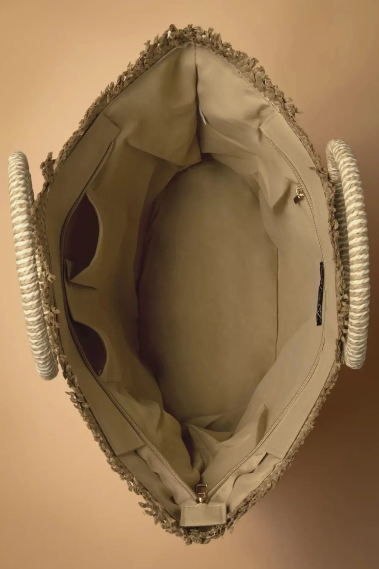 ‘We’Ve Got Your ‘Bag’ This Season!’ Je Kunt Al Je Dagelijkse Essentials Kwijt In Deze Grote Tas, Uitgevoerd In Gevlochten Raffia, Voorzien Van Een Ritssluiting En Korte Ronde Handvaten.