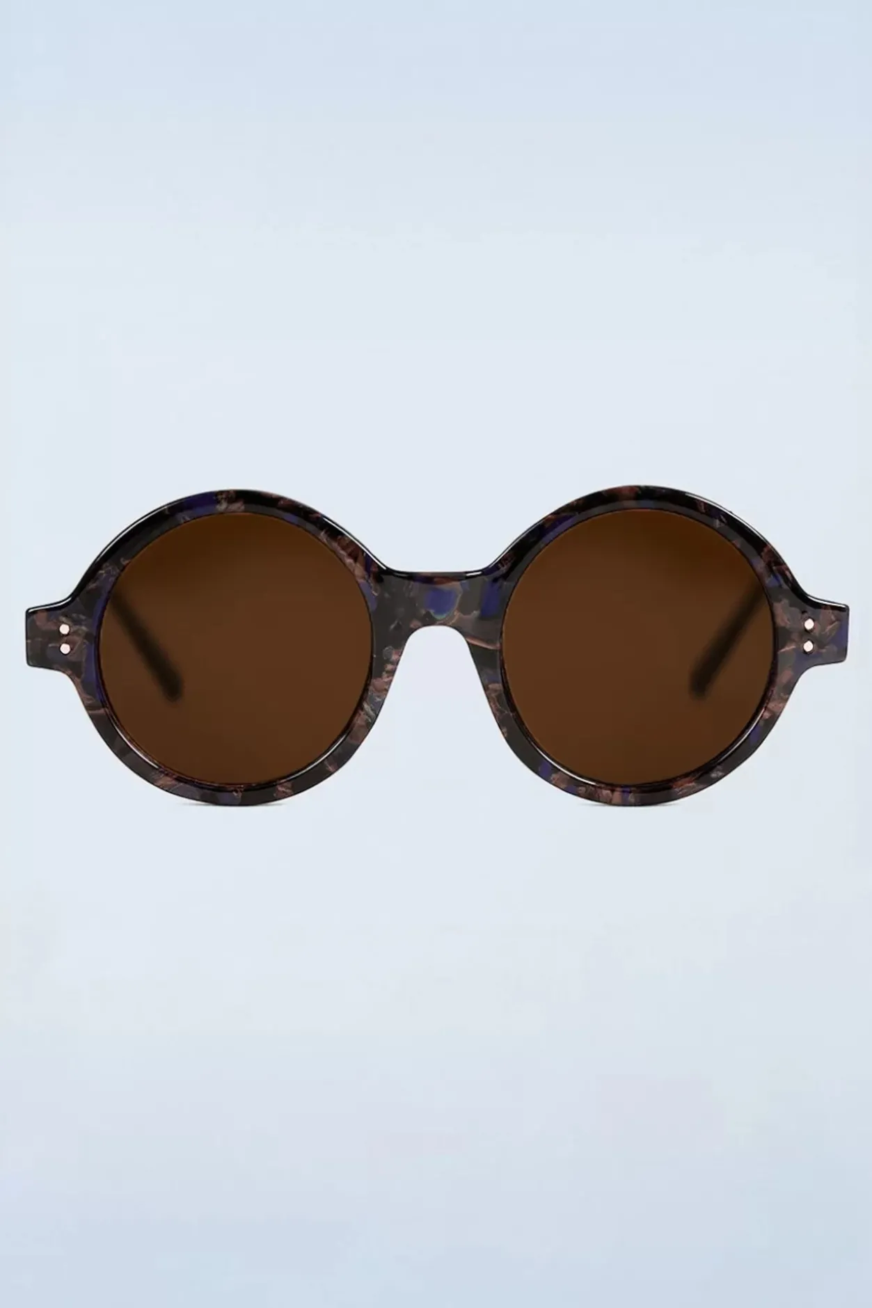 ”stay Shady, Baby!” Een Super Funky, Rond Model Gemaakt Van Gerecycled Kunststof In Blauw Met Een Marmer Effect En Bruine Poly Carbon Kunststof Glazen.