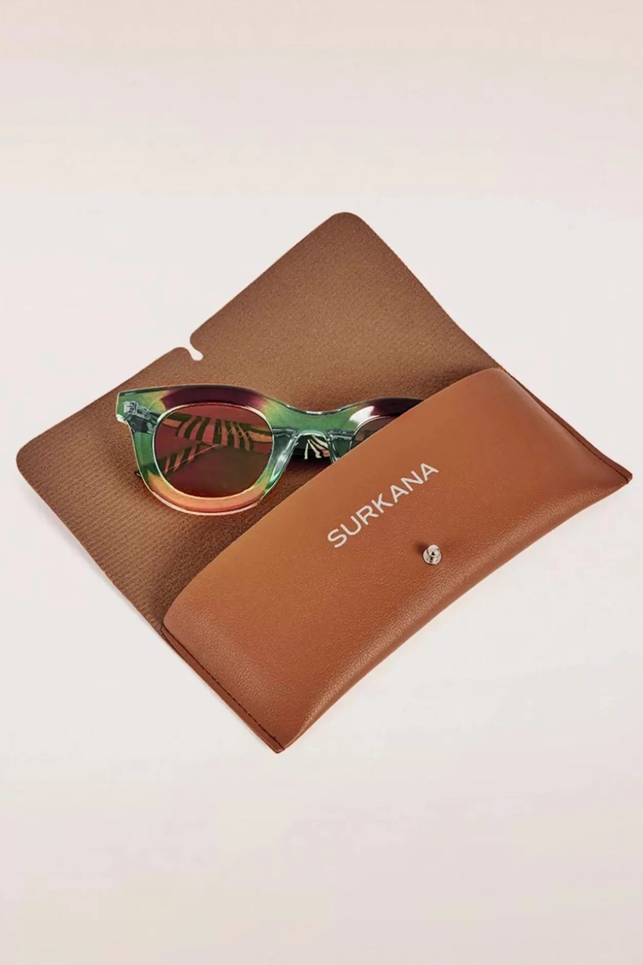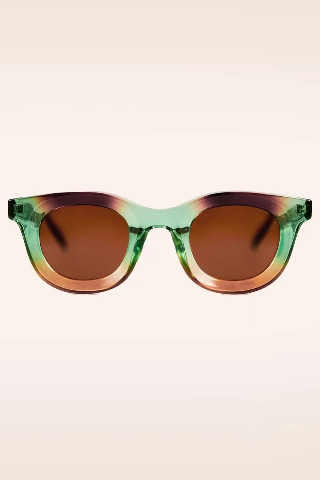 ”Let Your Sunglasses Do The Talking!” Een Stijlvol Model Gemaakt Van Gerecycled, Semi Transparant Kunststof In Groen En Bruin, Met Donkerbruine Pootjes Voorzien Van Een Streepjesprint En Bruine Poly Carbon Kunststof Glazen.