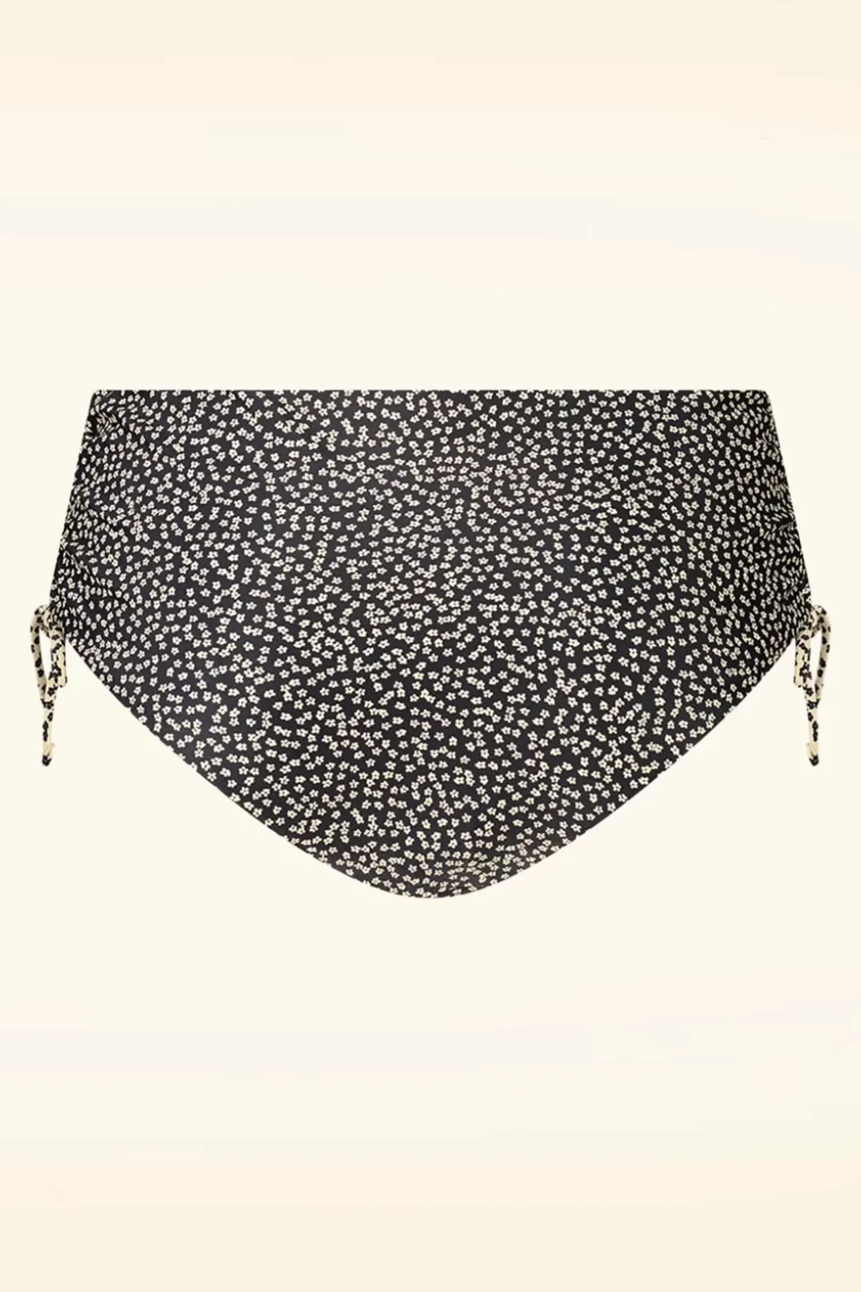 Geschikt Voor Muurbloempjes En ‘Wildflowers’! Dit Bikini Broekje Heeft Een Flatterende High Waist Met Strikkoordjes Aan De Zijkant En Is Uitgevoerd In Een Soepele En Stretchy, Gladde Zwarte Stof Met Een Print Van Kleine, Crèmekleurige Bloemetjes Die Heerlijk Draagt.