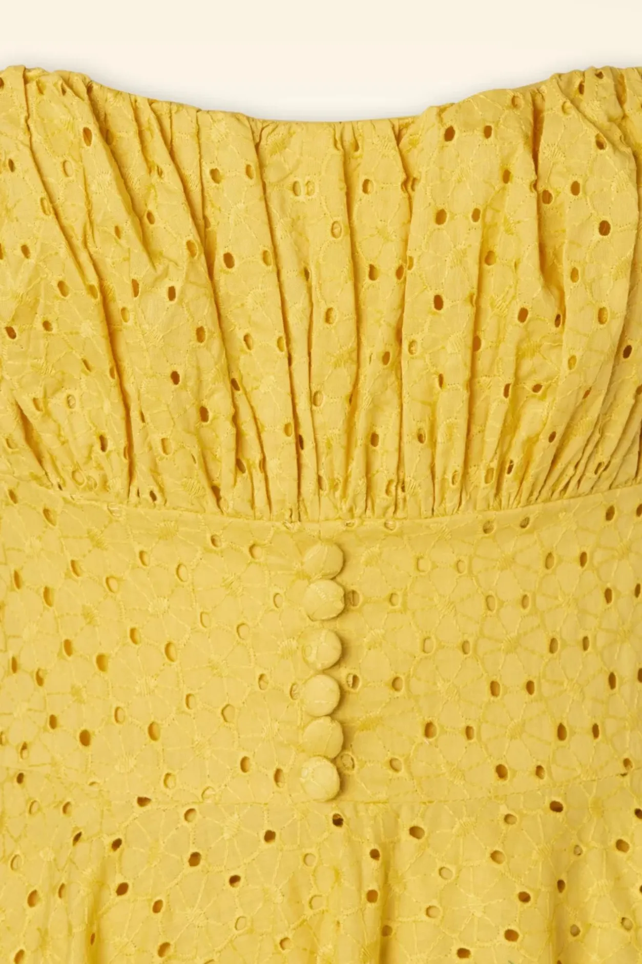 Deze 50S Valerie Swing Dress In Mustard Wordt Je Nieuwe Summer Fling! Deze Swing Beauty Heeft Een Aansluitendlijfje Met Plooitjes Bij De Buste, Sierknoopjes Ter Hoogte Van De Taille Ensmalle Verstelbare Schouderbandjes. Vanaf De Taille Loopt Ze Uit In Een Volleswing Rok Voor Een Mooi Vrouwelijk Fifties Silhouet. Uitgevoerd Ineen Mosterdgele, Broderie Kanten, 100% Bio Katoen (Stretcht Niet) En Is Volledig Gevoerd Met Katoen Waardoor Ze Heerlijk Luchtig Draagt Tijdens Warmere Dagen. Match Met Classy Accessoires En Ben De Mooiste Versie Van Jezelf! 😉
