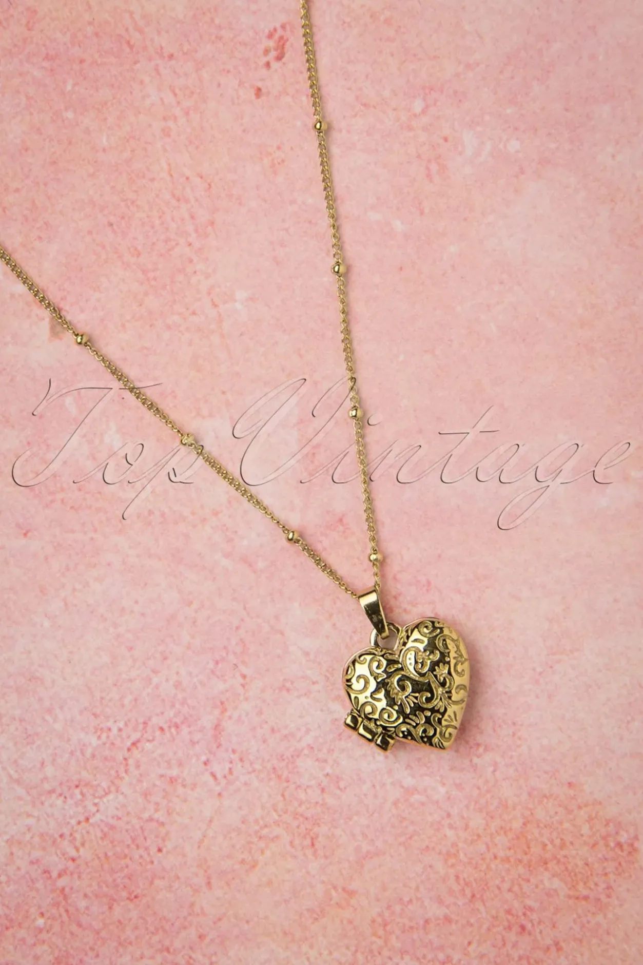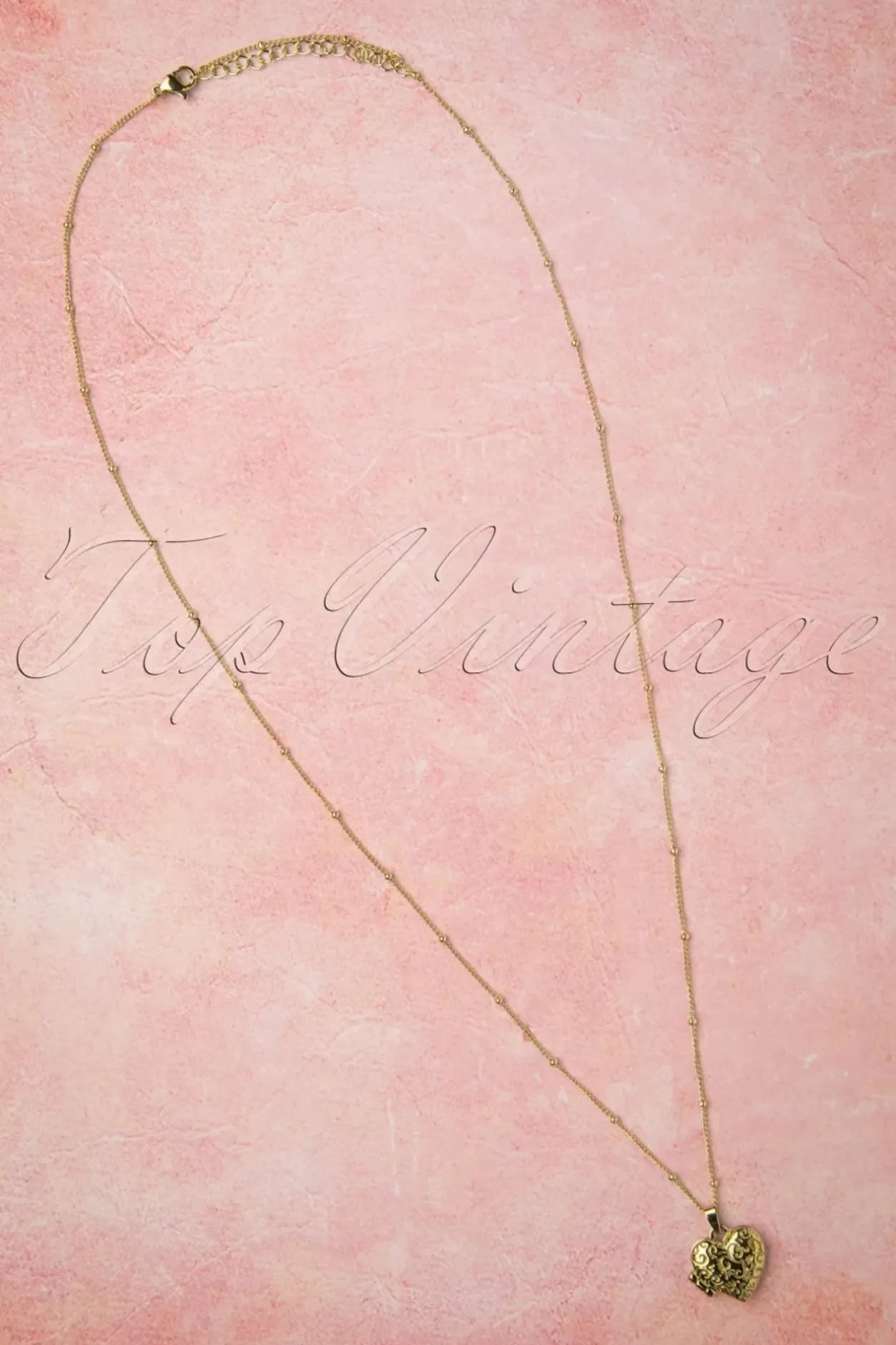 Een En Al Liefde Voor Deze 50S Heart Locket Necklace In Gold! Deze Korte, Goudkleurige Ketting Is Verfraaid Met Speelse Bolletjes En Is Voorzien Van Een Hartvormig Filigraan Medaillon Waar Je Bijvoorbeeld Een Fotootje Van Een Dierbare In Kan Doen. L-O-V-E!