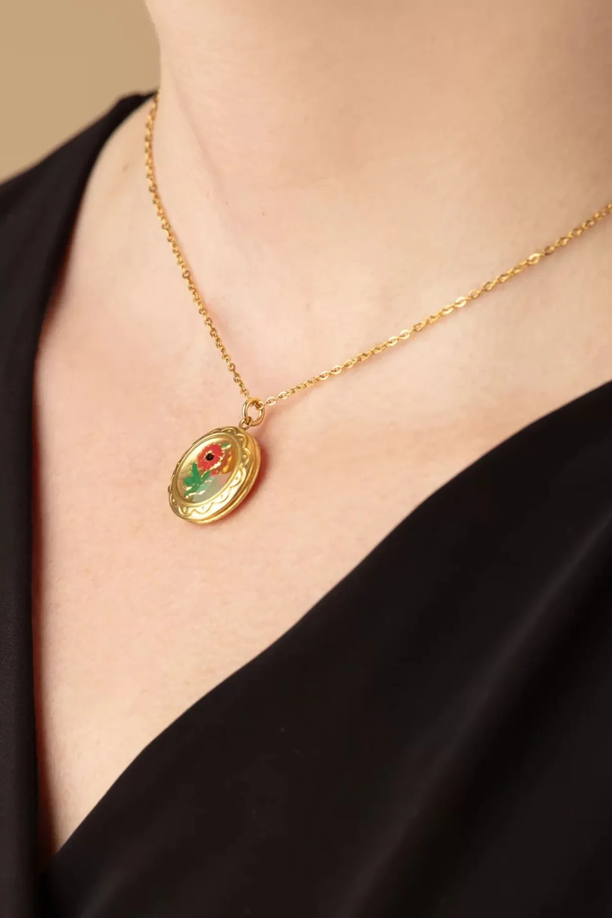 Een Positieve Boodschap, Een Liefdesbriefje, Een Kleine Foto Of Een (Lucht) Kusje… Je Draagt Het Bij Je In Het Medaillon Van Deze Korte Ketting! Uitgevoerd In Verguld Rvs Voorzien Van Een Rond En Bol Geëmailleerd Medaillon Voorzien Van Een Bloemetje.