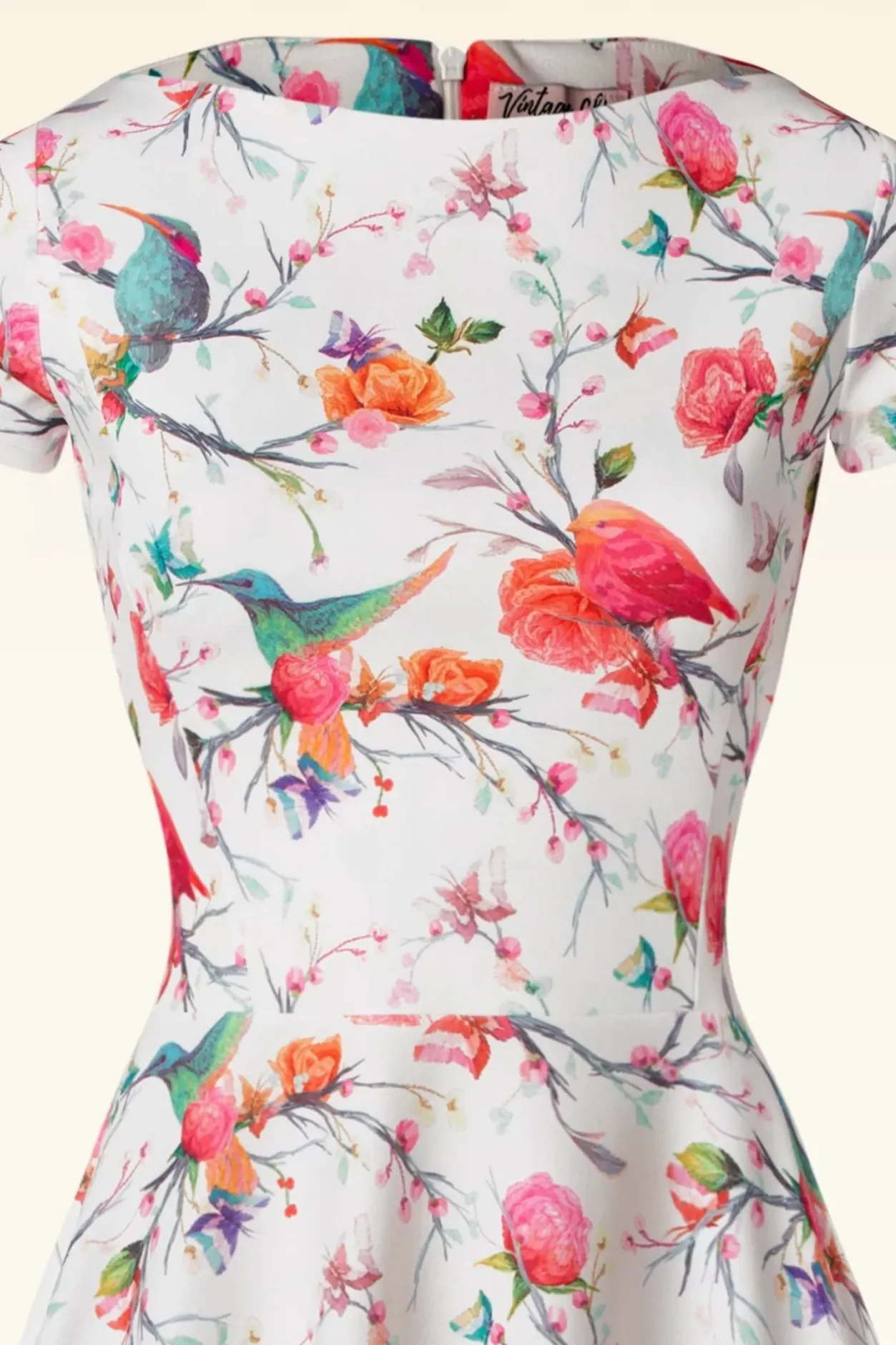 Wij Krijgen Lentekriebels Van Deze Blythe Birds Swing Dress In White! Ze Heeft Een Elegante Boothals, Korte Mouwen En Loopt Vanaf De Taille Uit In Een Zwierige Swing Rok. Uitgevoerd In Een Soepel En Stretchy, Wit Stofje Dat Heerlijk Draagt En Voorzien Is Van Een Kleurrijke Print Met Bloemen En Vogeltjes. Voel Jij Al Kriebels In Je Buik? 😉