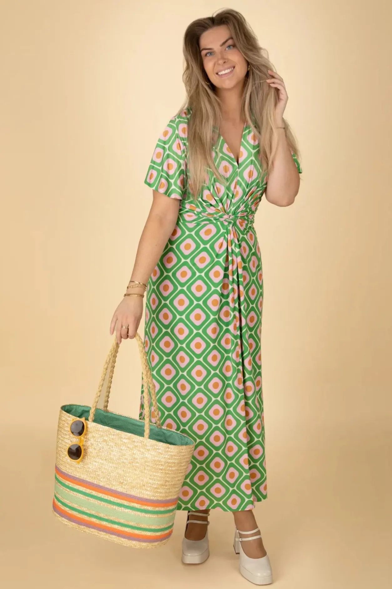 ”Be Groovy Or Leave, Man!” Deze Groovy Maxi Jurk Neem Je Probleemloos Óveral Mee Naartoe… Ze Is Namelijk Uitgevoerd In Een Soepele En Stretchy, Groene Slinky Stof Met Een Lichte Glans En Voorzien Van Een Geometrische Print.