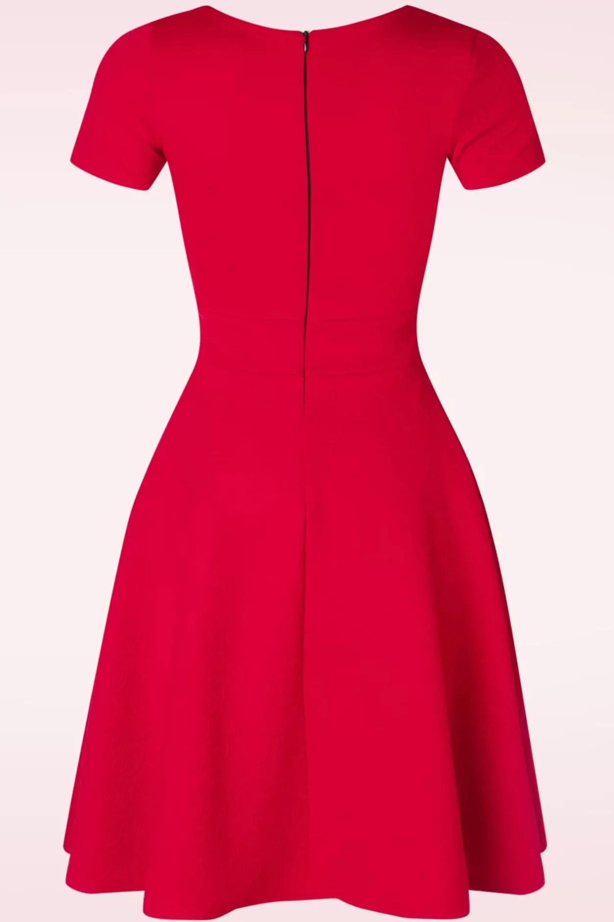 Doe Een Dansje Van Geluk In Deze Jenna Jacquard Jurk In Rood! Ze Is Uitgevoerd In Een Iets Dikker, Stretchy, Art-Deco Jacquard Stofje In Rood Dat Heerlijk Draagt.