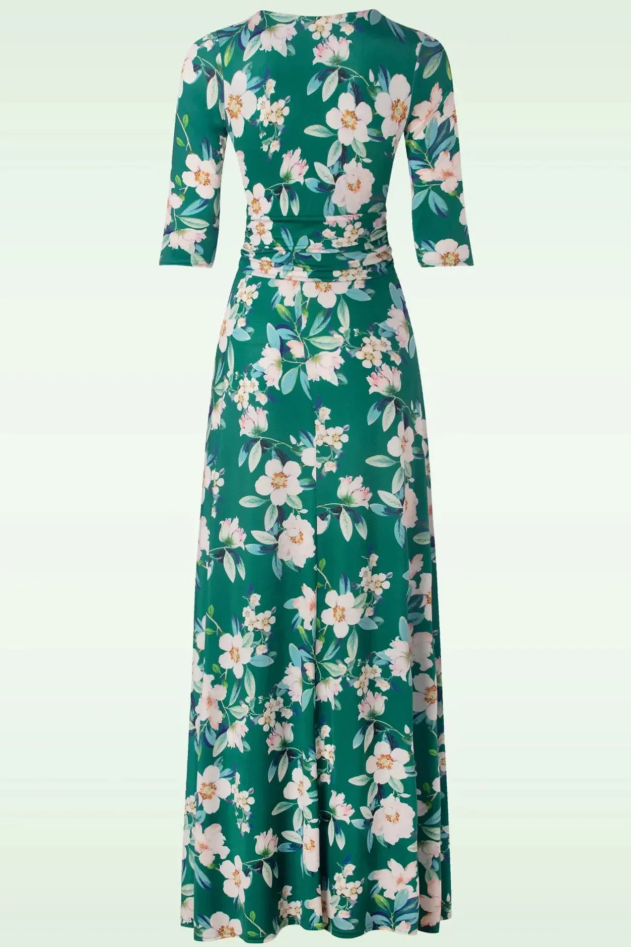 ”Make Them Stop And Stare!” Dit Doe Je In Valentina! Ze Is Uitgevoerd In Een Glad En Licht Glanzend, Soepel En Stretchy, Slinky Groen Stofje Met Een All-Over Bloemenprint.