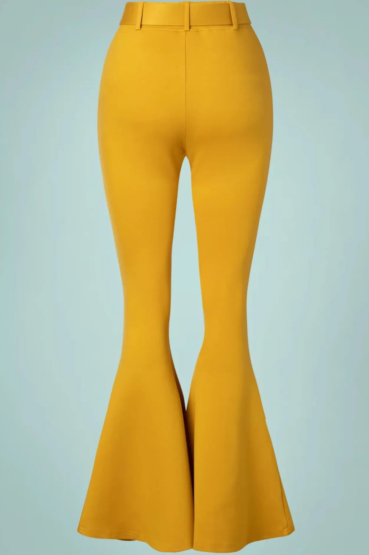 ”Nothing But Happy Vibes’ Als Je Deze Belted Bengaline Flared Trousers In Mustard Draagt! Geen Wonder Dat Flared Broeken Een Grote Trend Waren In De Seventies En Nu Een Fantastische Comeback Maken! Ze Heeft Een Hoge Taille, Een Afneembare Matching Riem En Wijd Uitlopende Pijpen Die Niet Alleen Speels Maar Ook Nog Eens Super Flatterend Zijn. Uitgevoerd In Een Stevige, Stretchy Maar Zachte, Mosterdgele Bengaline Viscosemix Voor Een Heerlijk Draagcomfort. ”Be Groovy Or Leave, Man!”