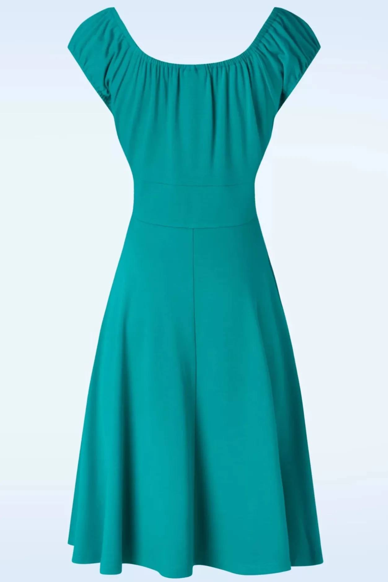 Swingend De Zomer In Met Deze Tessy Swing Jurk! Vanaf De Taille Loopt Ze Uit In Een Zwierige Rok Met Handige Steekzakken En Ze Is Uitgevoerd In Een Soepele En Luchtige, Stretchy, Turquoise Stof Die Heerlijk Draagt. Zomer?! Wij Zijn Klaar Voor Je! 😉