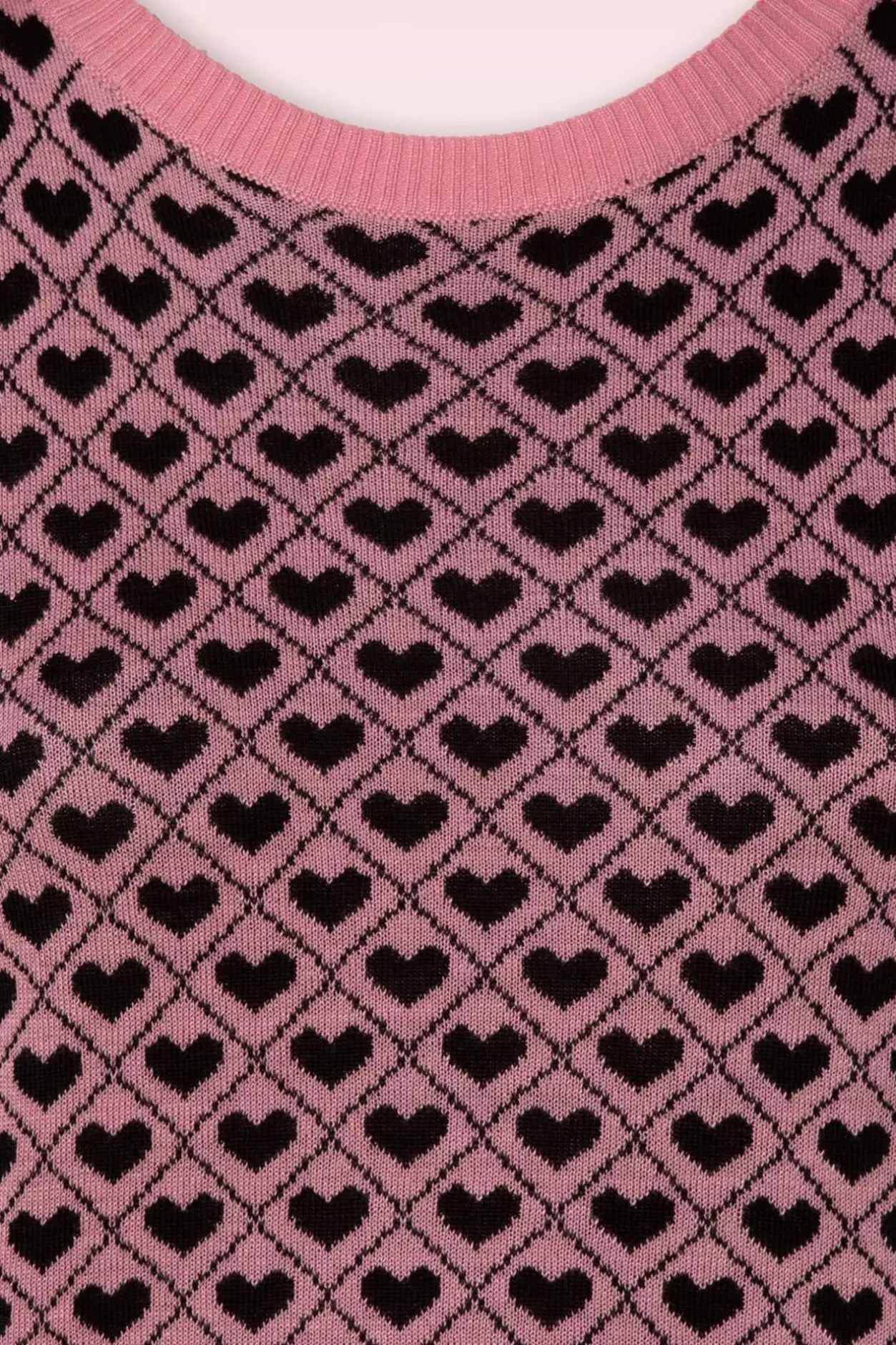 “Love Is In The Air” Met Deze 50S Heart Pattern Sweater In Pink! “Do You Want To Know What Love Looks Like? Just Take A Look At This Cutie” 😉 Ze Heeft Een Ronde Halslijn En Schattige 1/2 Pofmouwen. Uitgevoerd In Een Zachte, Fijngebreide, Stretchy, Roze Viscose Met Een Zwart Geruit Hartjespatroon. En, Al Verliefd?