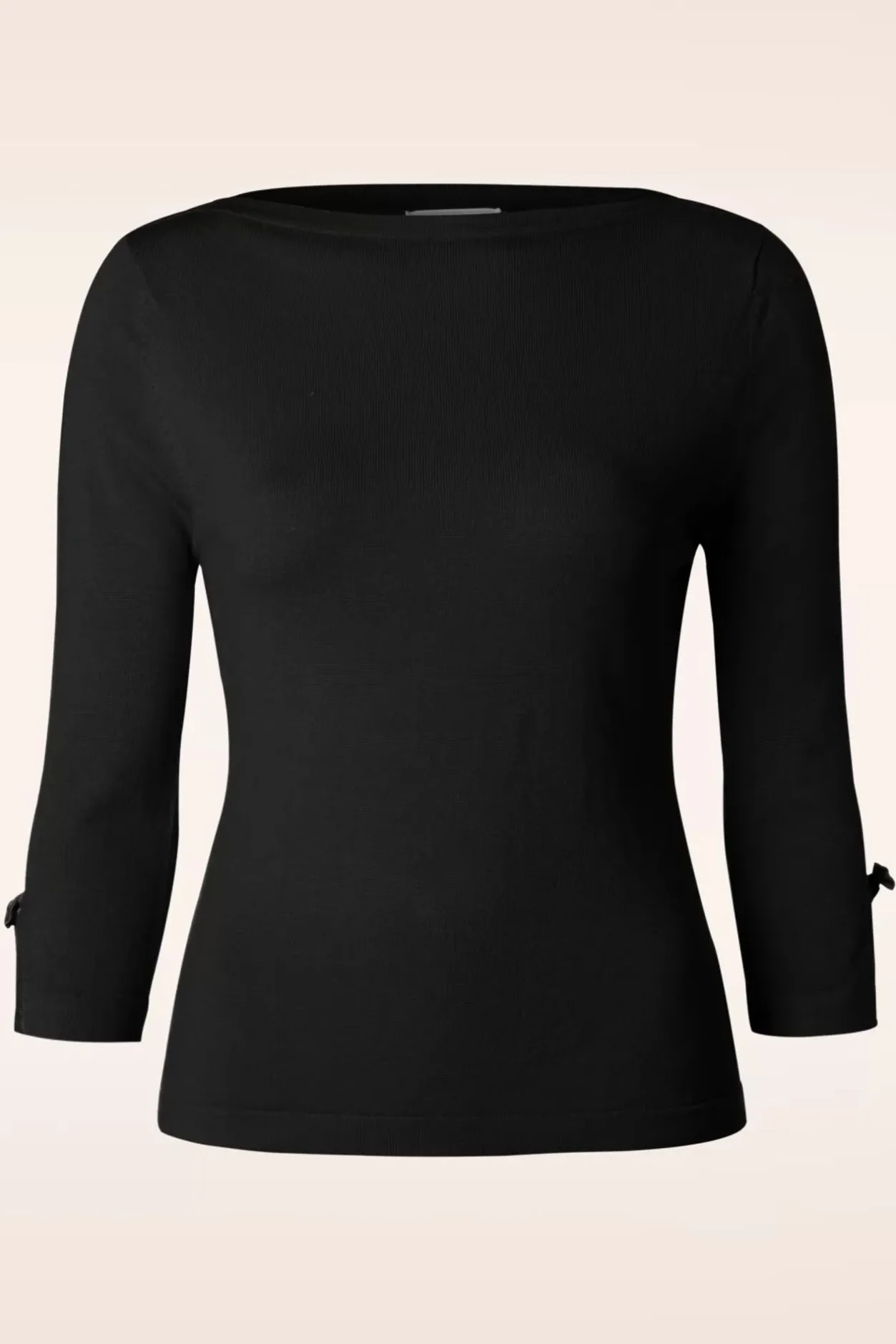 Elegant En Schattig Deze 50S Addicted Sweater In Black! Eenvoudig Maar Toch Speciaal Door De Lieflijke Details. De Top Heeft Een Mooie Slash Halslijn En Flatterende 3/4 Mouwtjes Met Splitjes Die Afgezet Zijn Met Kleine Vaste Strikjes, Só Cute! Uitgevoerd In Een Heerlijke Soepele, Stretchy Zwarte Viscosemix Die Zijn Perfecte Pasvorm Zal Blijven Behouden, Zelfs Na Een Aantal Wasbeurten. Een Veelzijdige Classy Top Die Niet Mag Ontbreken In De Kast Van Iedere Vintage Lady, De Naam Zegt Al Genoeg; Wij Zijn Addicted!