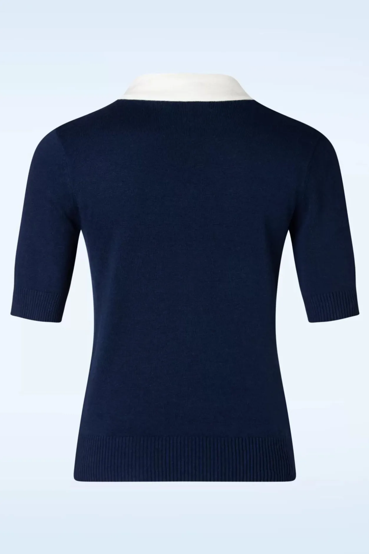 “Ahoy, Me Hearties!” Deze Ahoy Sail Jumper In Navy And White Is Zo Cute! Ze Heeft 1/2 Mouwen En Een Uiterst Mooi Sailor Kraagje Met Opengewerkt Patroon Die Als Shawltje Geknoopt Is. Uitgevoerd In Een Stretchy, Fijngebreide, Marineblauwe Viscose-/Katoenmix Die Heerlijk Draagt. “Yo Ho Ho And A Bottle Of Fashion!” 😉