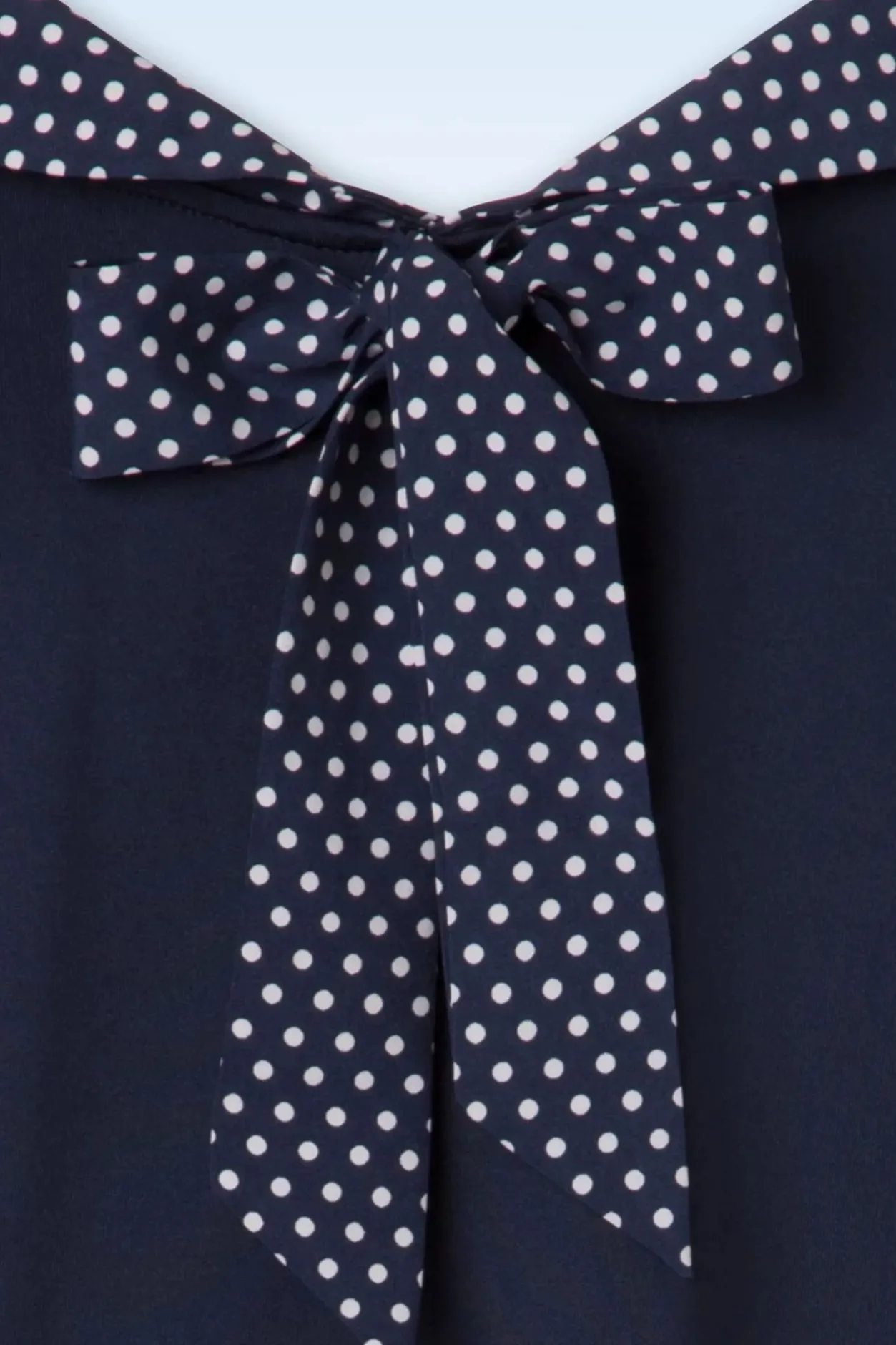 Deze 50S Alicia Blouse Is Een Klassieke Top Met Een Polkadot Twist! Peekaboo Polkadot!… Niet Overheersend Maar Wel Subtiel Aanwezig Op Deze Veelzijdige Top. Ze Heeft Korte Mouwen Met Contrasterende Omslagjes En Een Print Van Witte Polkadots. Een Hoog Gesloten Ronde Halslijn Met Opstaande Omslagkraag Met Diezelfde Schattige Witte Polkadots. Uitgevoerd In Een Zacht, Stretchy, Navyblauw Stofje Voor Een Heerlijk Draagcomfort. Je Kunt Nooit Genoeg Tops Hebben, Maar Deze Zal Met Stip Op Nummer 1 Staan 😉