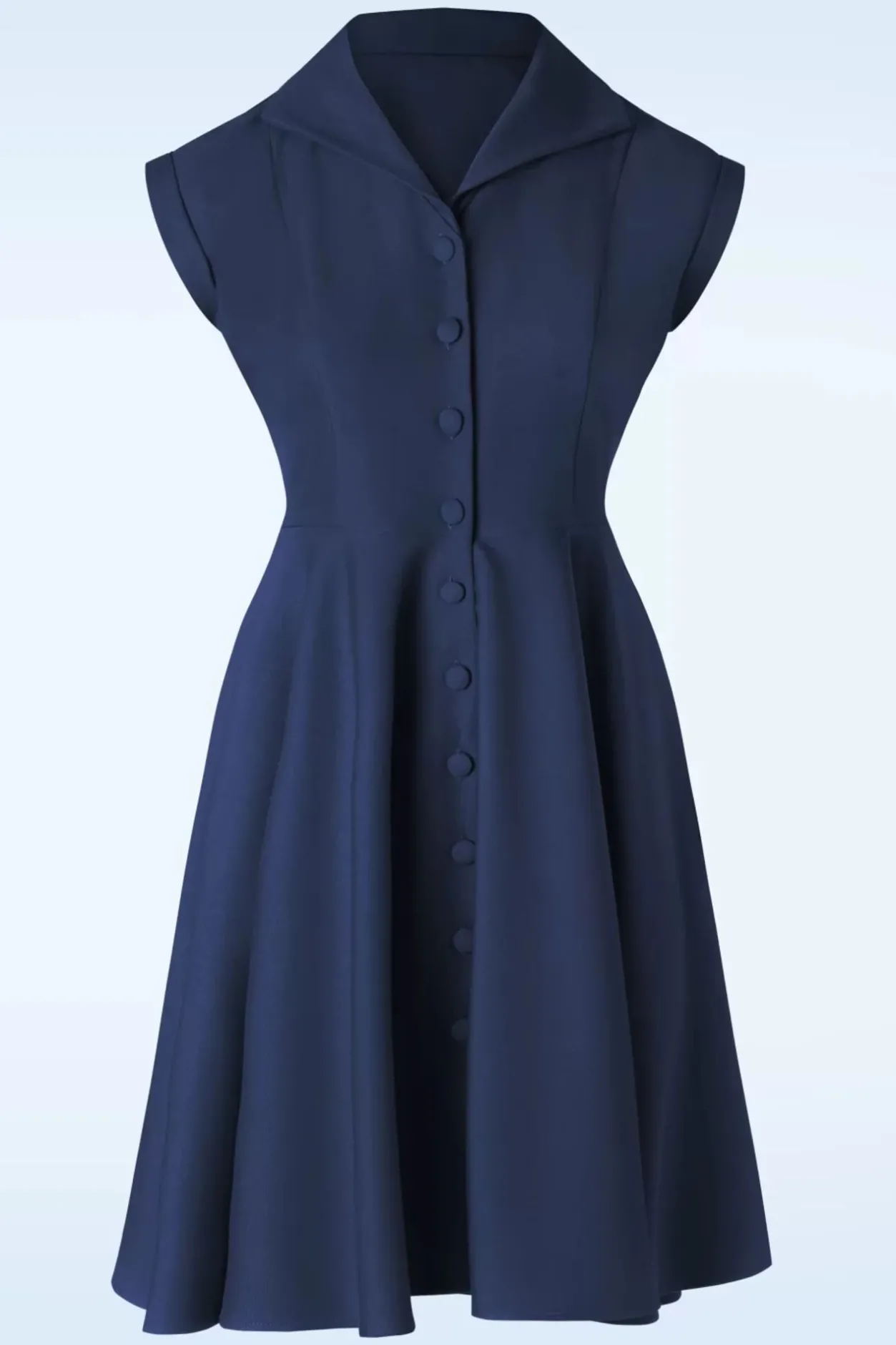 ”Let’s Rock-‘N-Roll Baby Doll!” Deze Veelzijdige Semi-Swing Beauty Met Knoopjes Is Uitgevoerd In Een Stevige, Maar Toch Soepel Vallende, Marineblauwe Stof (Stretcht Amper) Die Heerlijk Draagt.