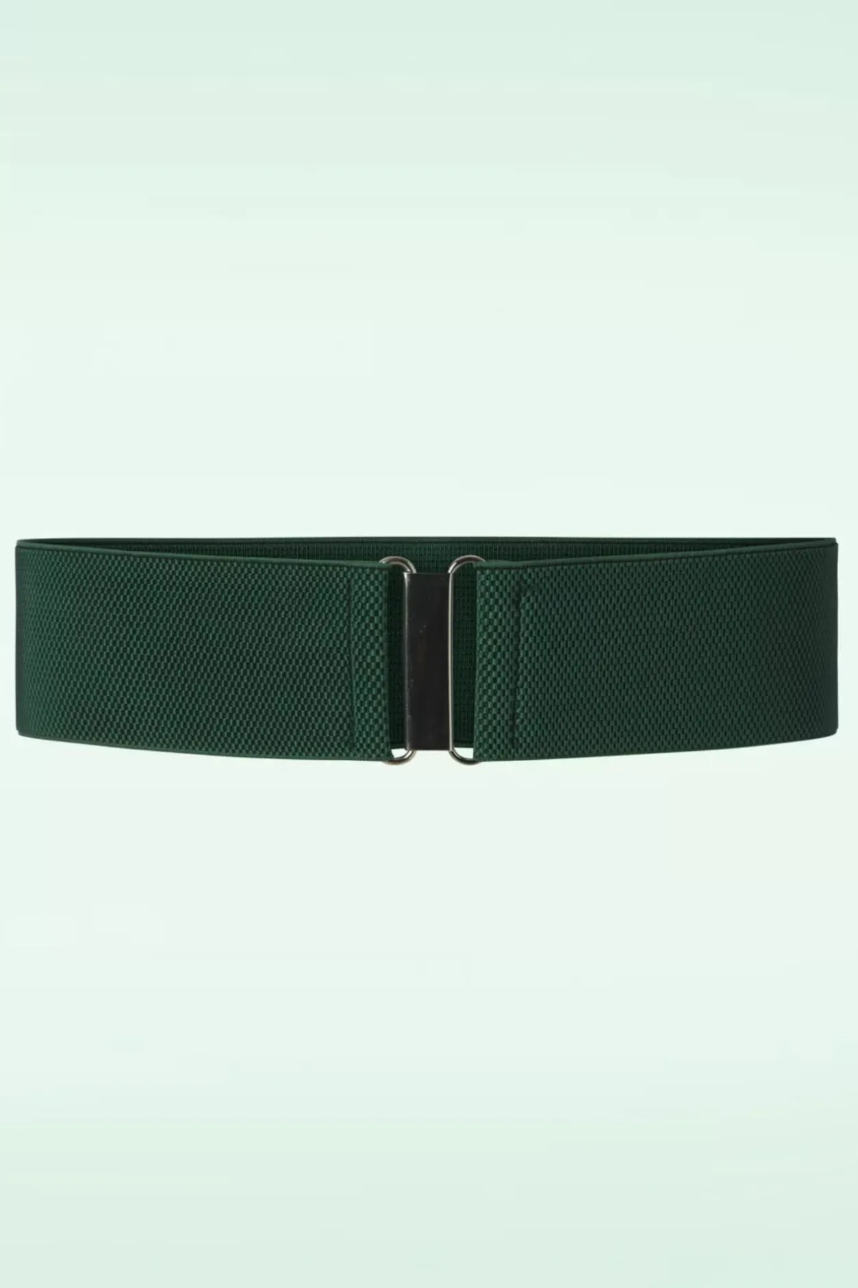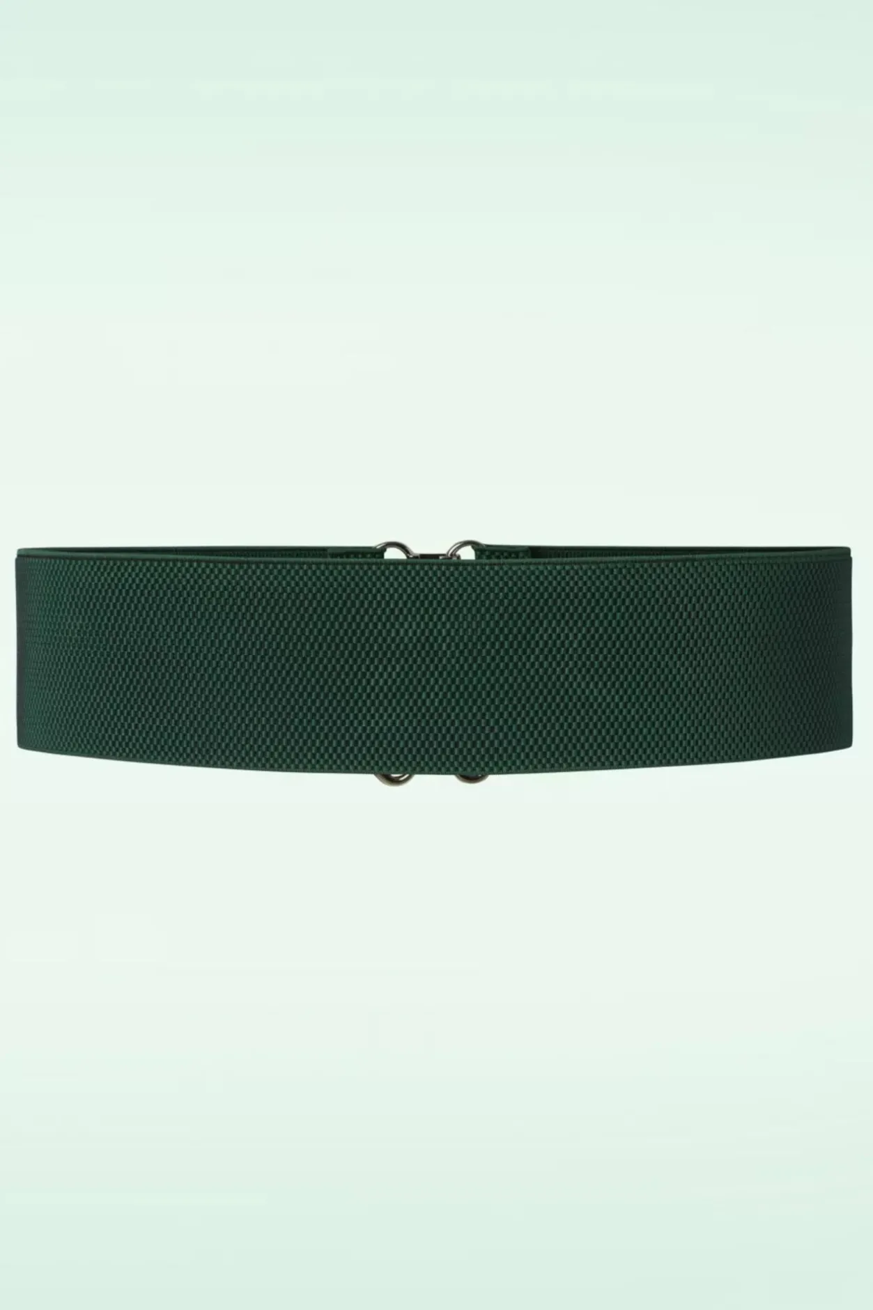 Deze 50S Gloria Stretch Riem In Groen Is Dé Ideale Riem Om Iedere Vintage Outfit Helemaal Af Te Maken! Gemaakt Van Breed Donkergroen Elastiek Met Een Zilverkleurige Gesp Die Sluit In De Taille. Draag Hem In Combinatie Met Onze Swing Jurken Om Je Taille Te Accentueren Voor Een Prachtig Silhouet!
