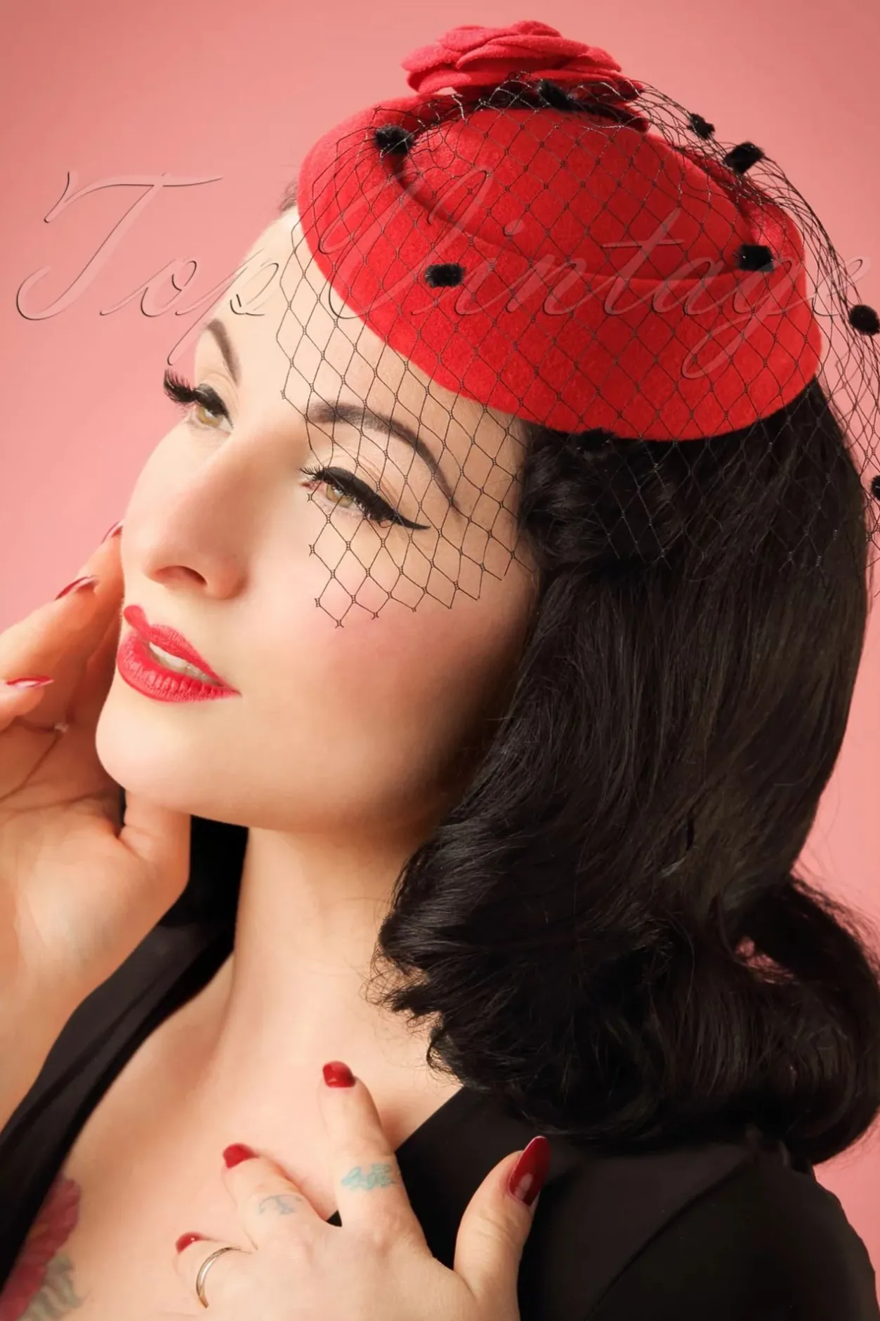 Met Deze 50S Marilyn Fascinator Ben Jij Net Zo Glamorous Als Marilyn! Maak Jouw Elegante Outfit Helemaal Af Met Deze Beauty! Deze Prachtige Fascinator Heeft Een Mooie Rode Bloem Aan De Zijkant En Een Mysterieuze Zwarte Sluier, Versiert Met Kleine Zwarte Dotjes. Afgewerkt Met Een Zwarte Haarklem Om Haar Te Bevestigen Zodat Het Hoedje Goed Op Zijn Plaats Blijft Zitten. Elegance At Its Best!