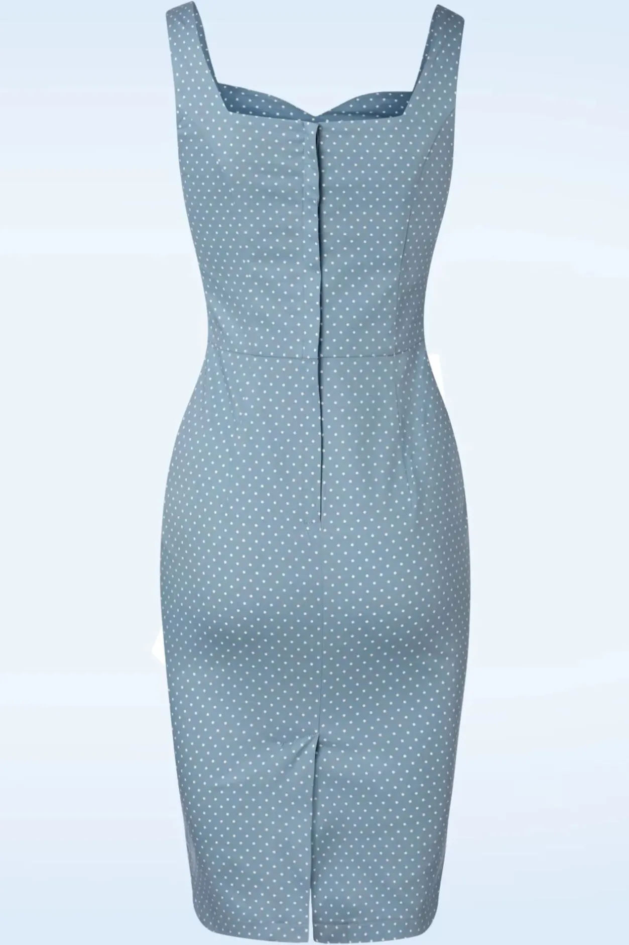 ”This Dress Is A Winner!” Ze Is Uitgevoerd In Een Stevige, Luchtige En Stretchy Lichtblauwe Katoenmix En Een Print Van Witte Polkadots. Is Het Geen Dotje?!