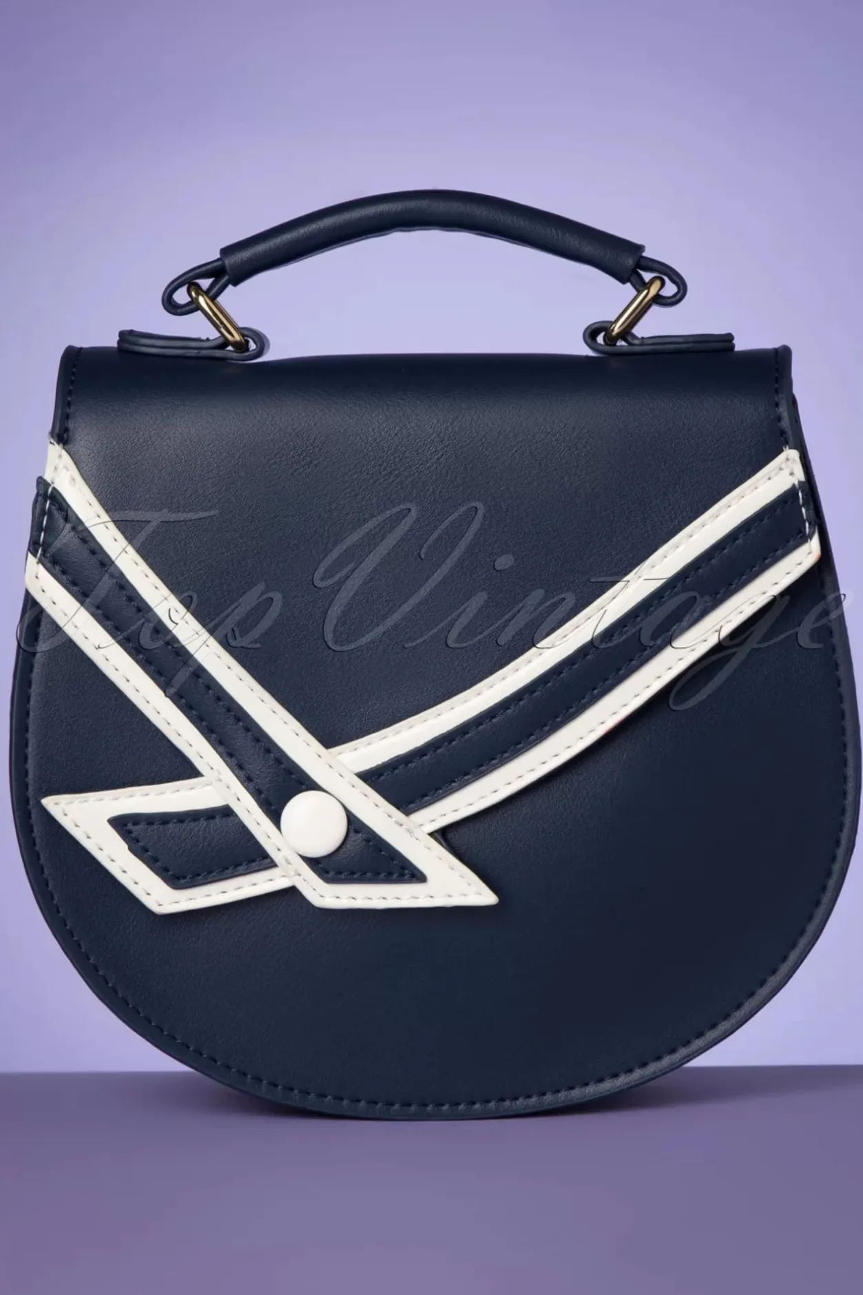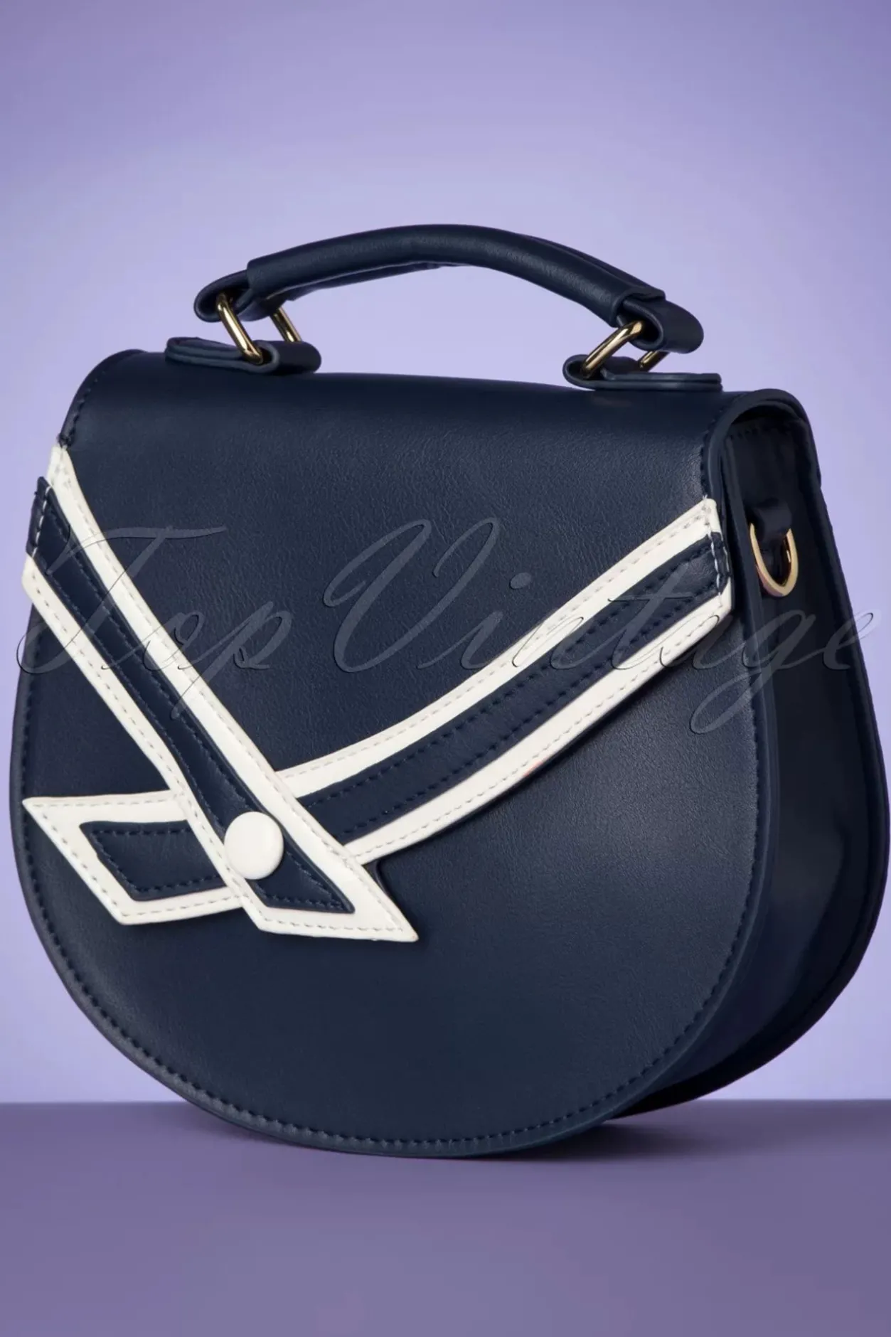 Voeg Een Sailor Vibe Toe Aan Je (Retro) Outfit Met Deze 50S Nautical Kelly Lee Handbag In Navy Blauw Om Je Arm! Deze Kleine Beauty Heeft Een Onzichtbare Magneetsluiting, Een Kort Handvat En Is Uitgevoerd In Navyblauw ‘Faux’ Leder Met Roomwitte Details. Ze Wordt Bovendien Geleverd Met Een Langer, Afneembaar Hengsel Zodat Je Haar Ook Speels Om Je Schouder Kunt Dragen. ”Let’s Get Nauti!”