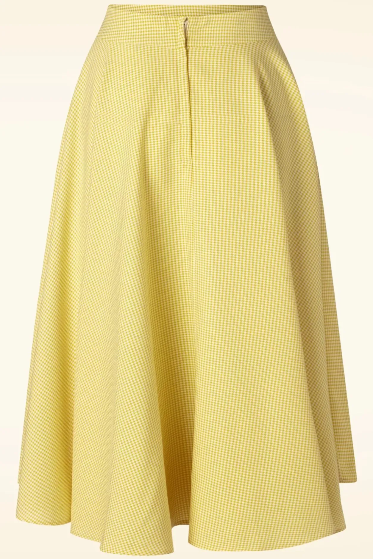 ”Be The Sunshine!” Deze Gele Stunner Is Uitgevoerd In Een Stevig Maar Luchtig Stofje Voorzien Van Een Pied De Poule Printje.