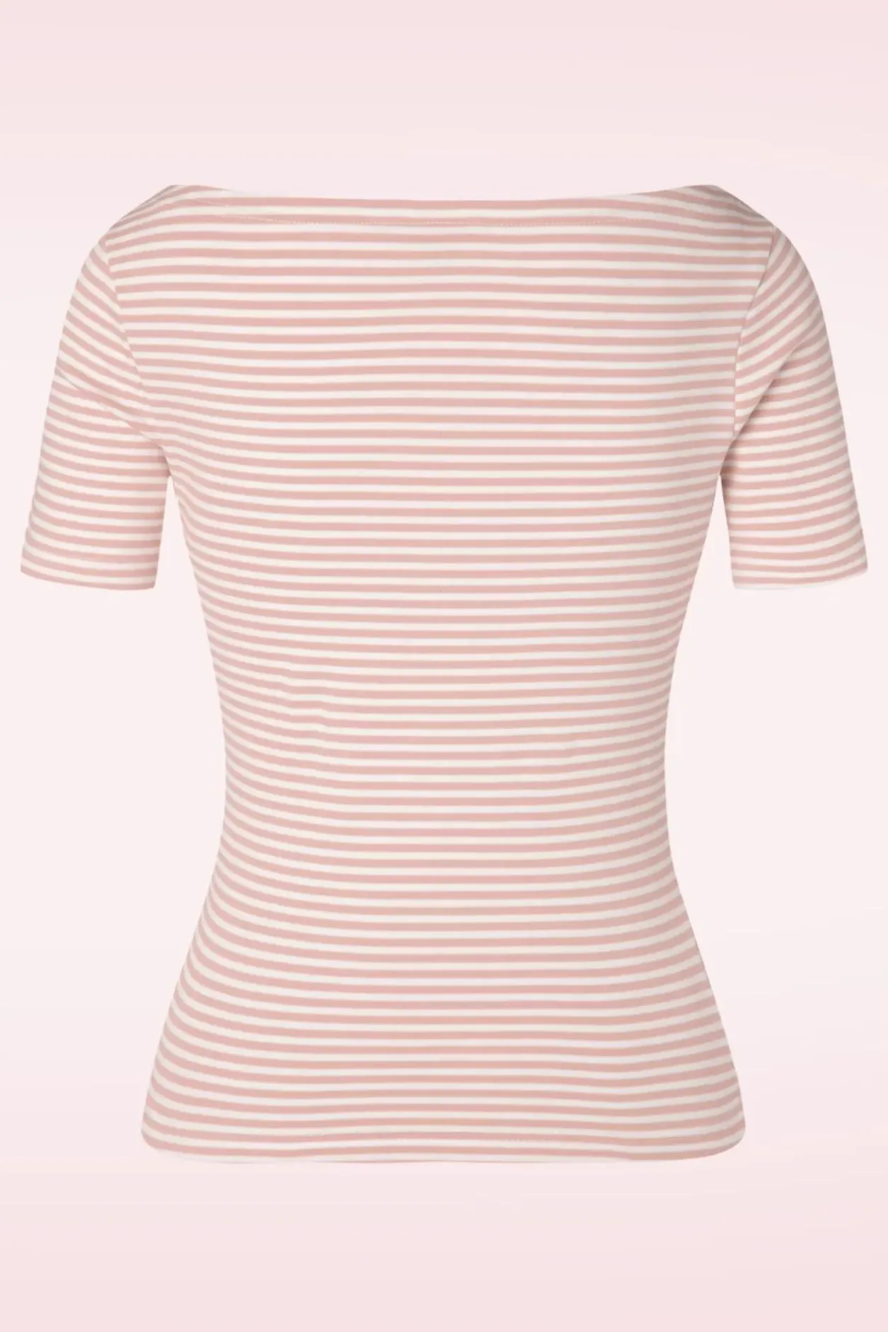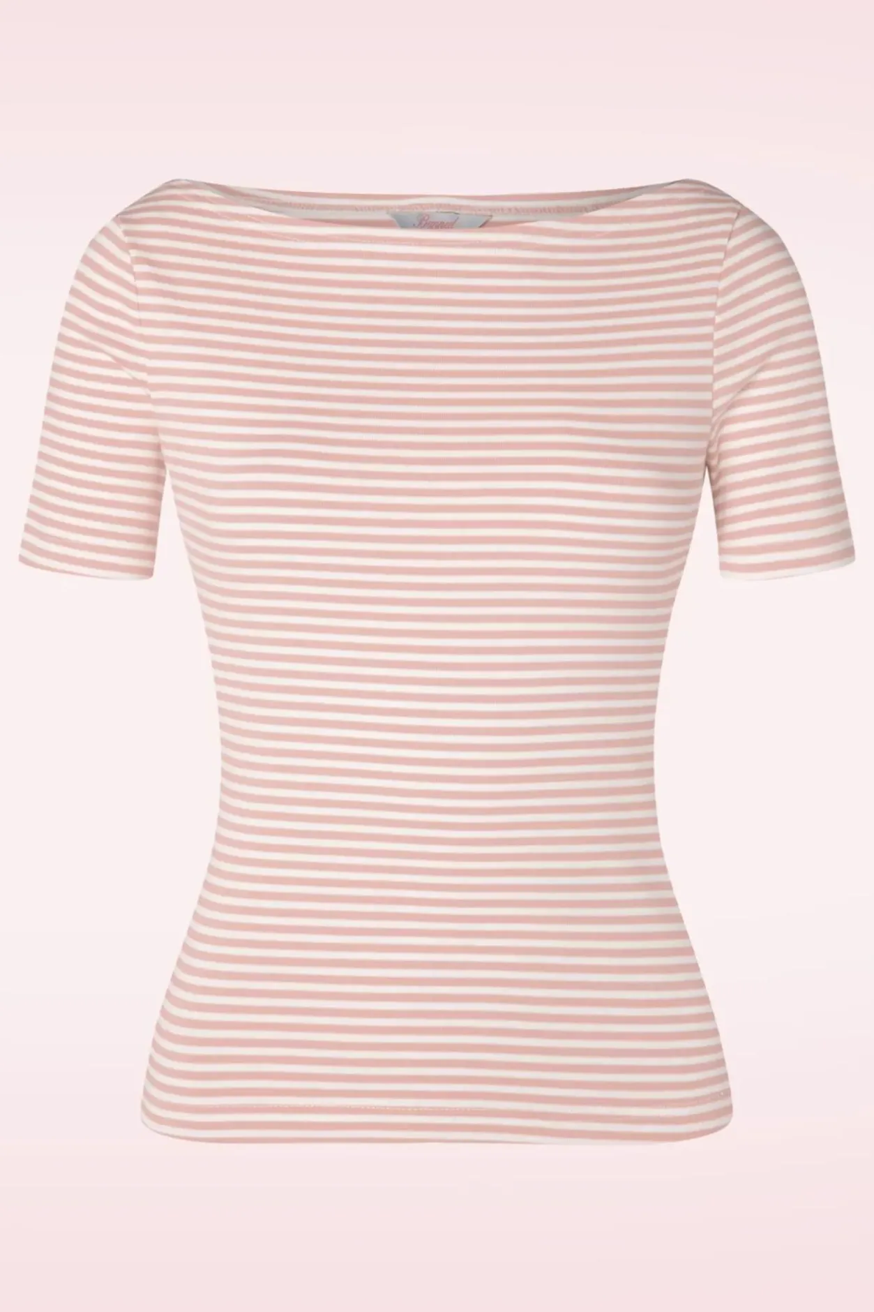 Deze 50S Sweet Candy Jersey Top In Blush Is Klassiek In Al Haar Eenvoud! De Mooie Boothals, Korte Mouwtjes En Iconische Lichtroze Streepjes Maken Deze Top Een Perfecte Basic Met Een Speelse Twist! Uitgevoerd In Een Heerlijk Soepele En Stretchy, Witte Katoen Die Zijn Perfecte Pasvorm Zal Blijven Behouden. Een Veelzijdige Top Die Niet Mag Ontbreken In De Kast Van Een Echte Vintage Lady! 😉